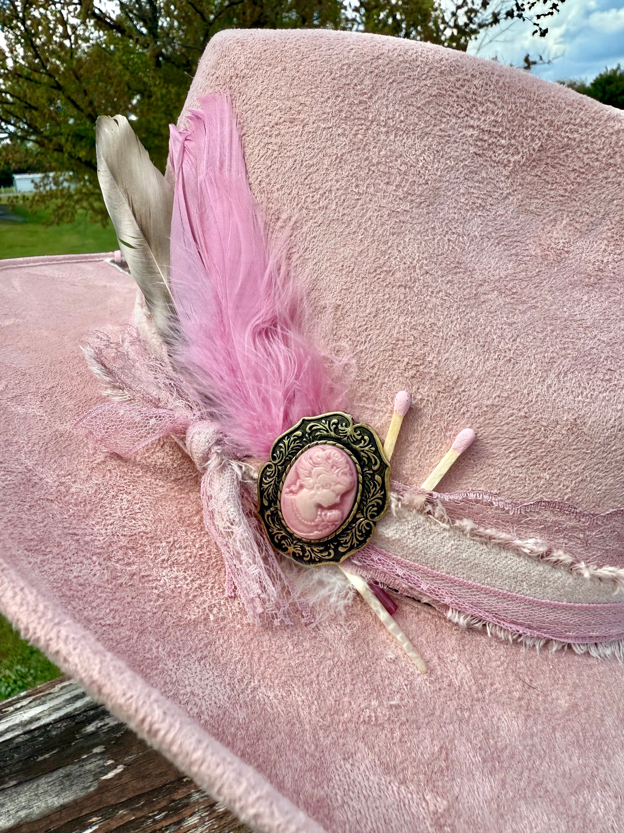 This is the highest quality hat in my shop. Made in Mexico, it’s a more stiff and sturdy brim. 100% EXTRA soft, vegan suede. All weather proof, so they are safe in the rain!