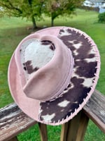 "And Everything Nice" Burned Cow Print Cowboy Hat, Dusty Pink Suede Hat, Cowhide Whipstitched Hat
