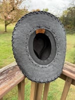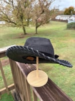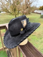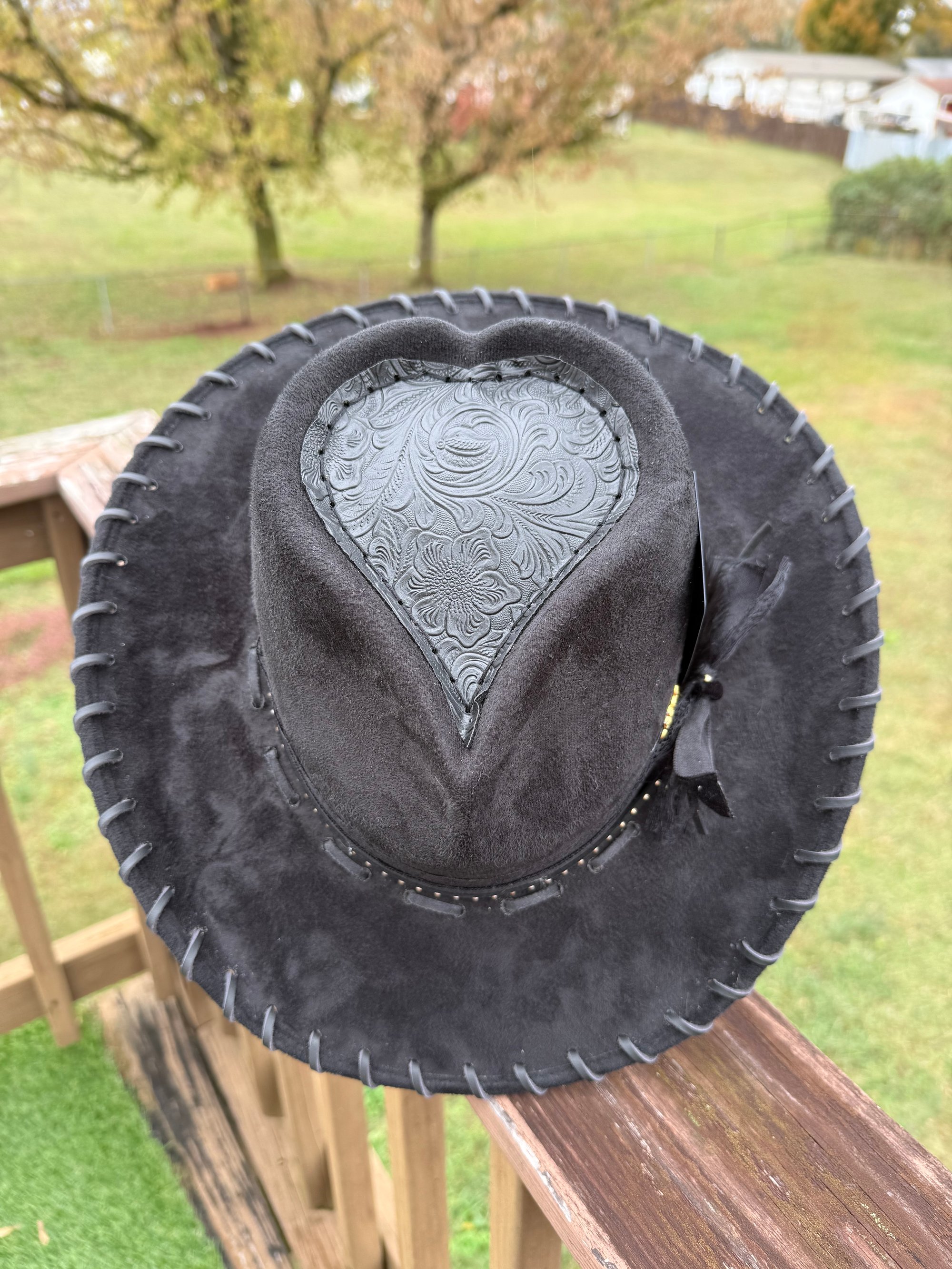 “Black Beauty” is an All Black Heart Shaped Cowboy Hat with Gold Accents