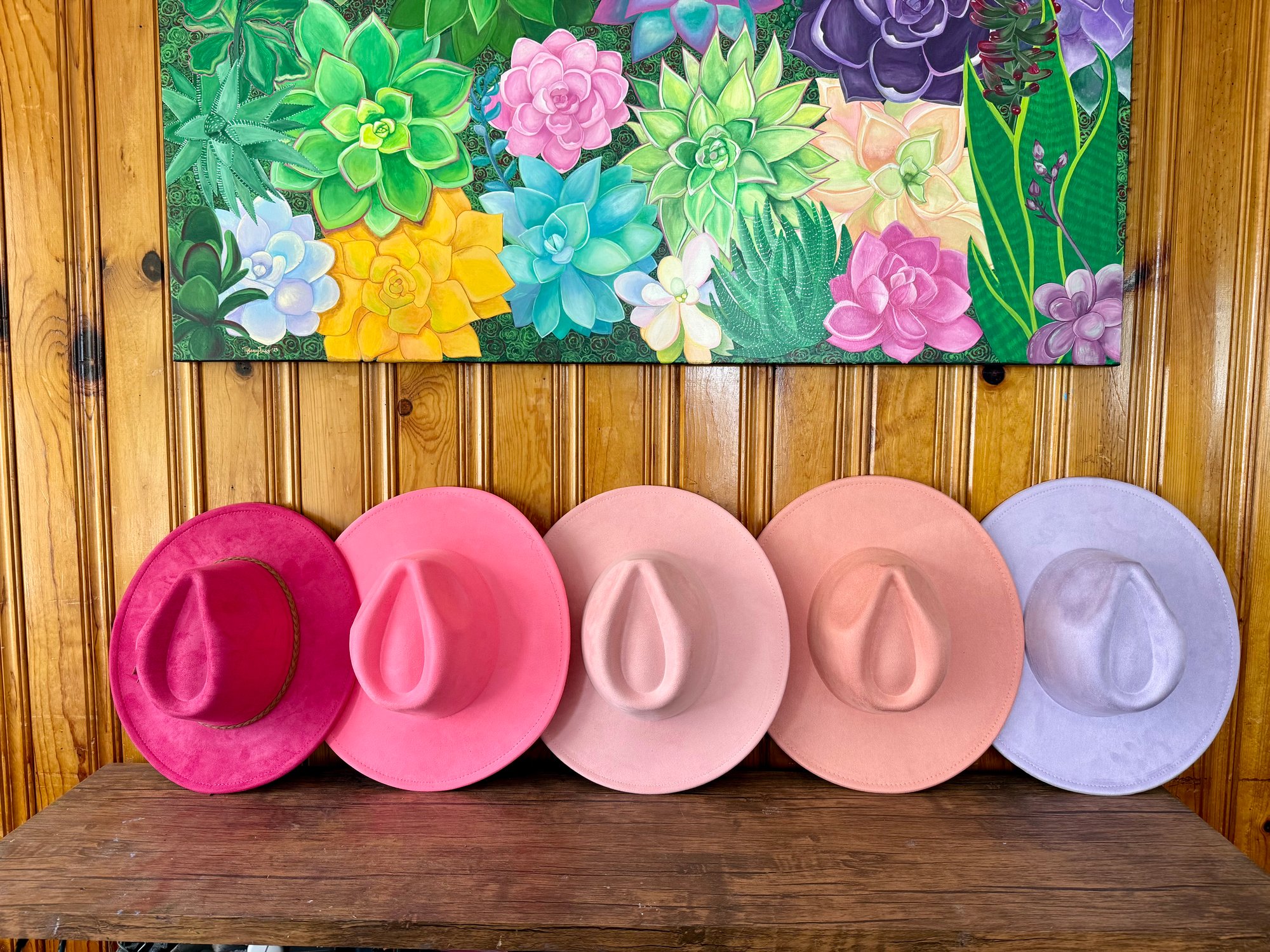 Great Quality soft material. 100% vegan suede, flat brim hats. All weather proof, so they are safe in the rain!