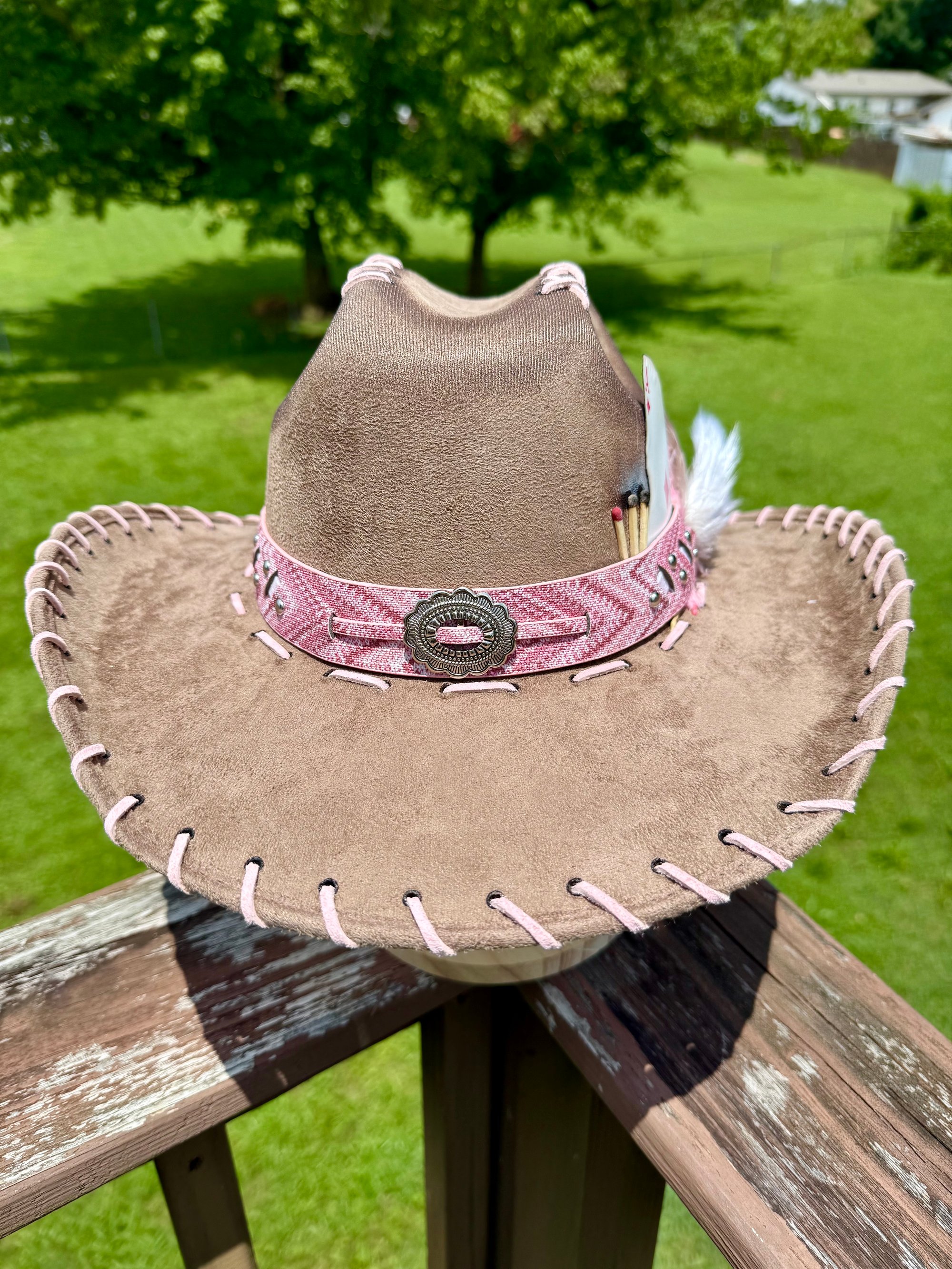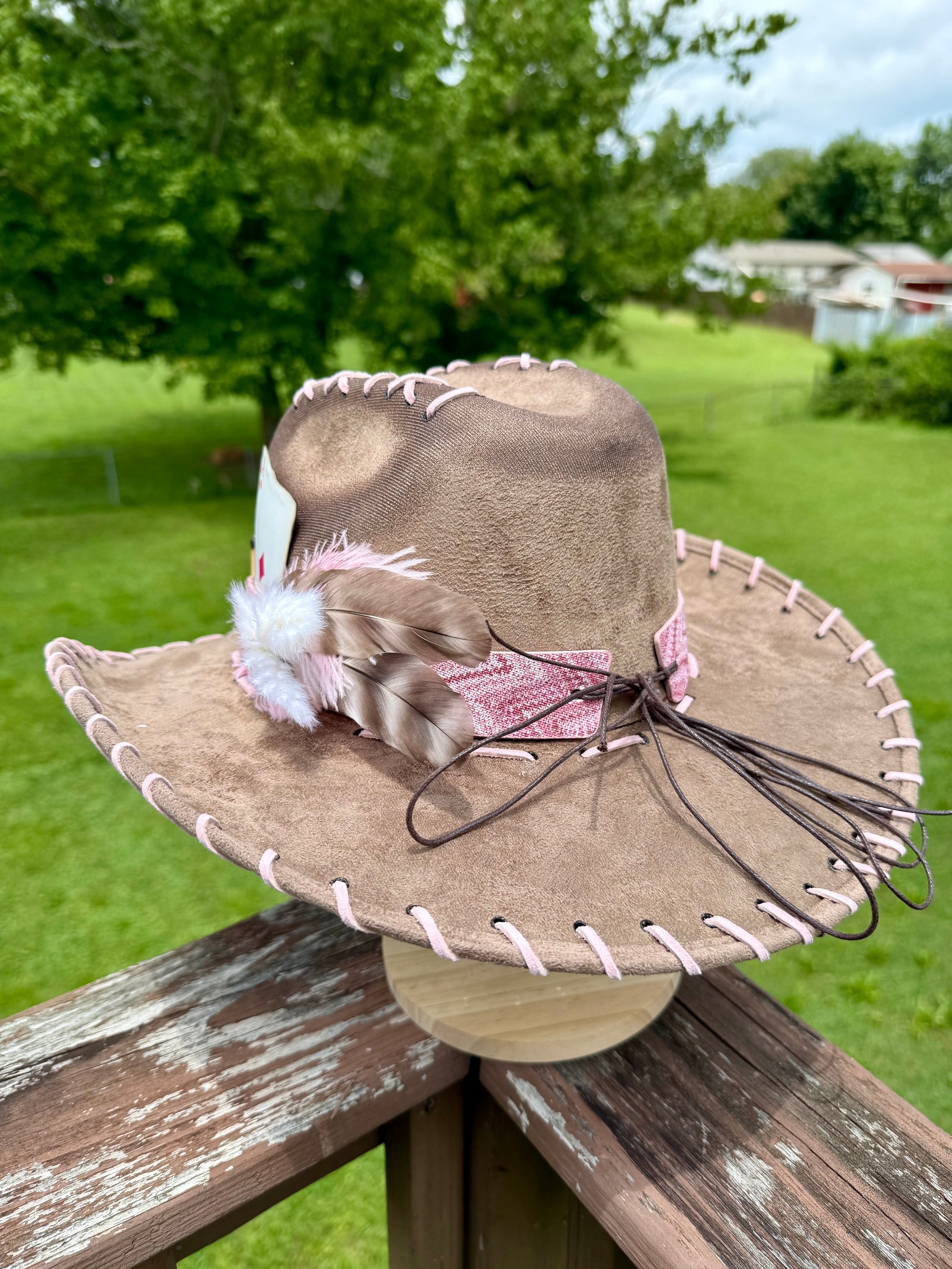 This is the highest quality hat in my shop. Made in Mexico, it’s a more stiff and sturdy brim. 100% EXTRA soft, vegan suede. All weather proof, so they are safe in the rain!