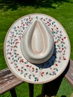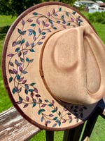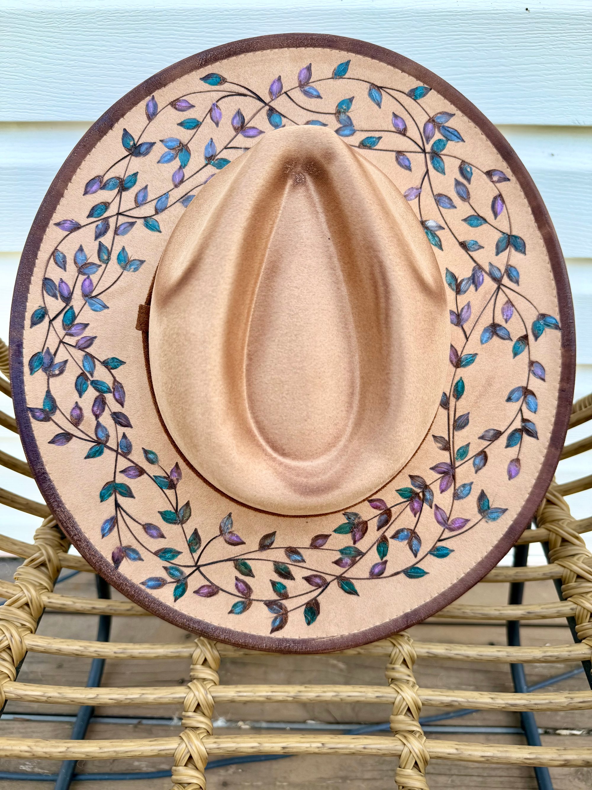Design will differ slightly from hat to hat, including bands, stitch placement, and line work. Please allow creative differences since these are hand burned and not made with lasers.