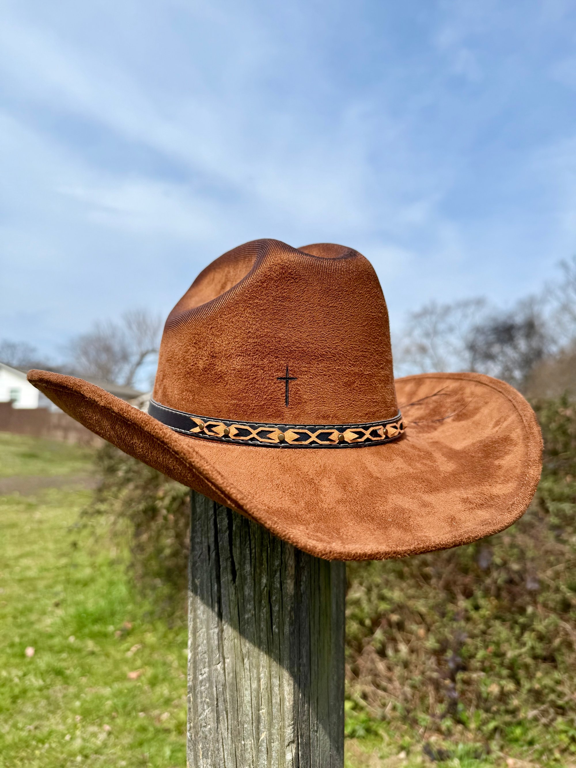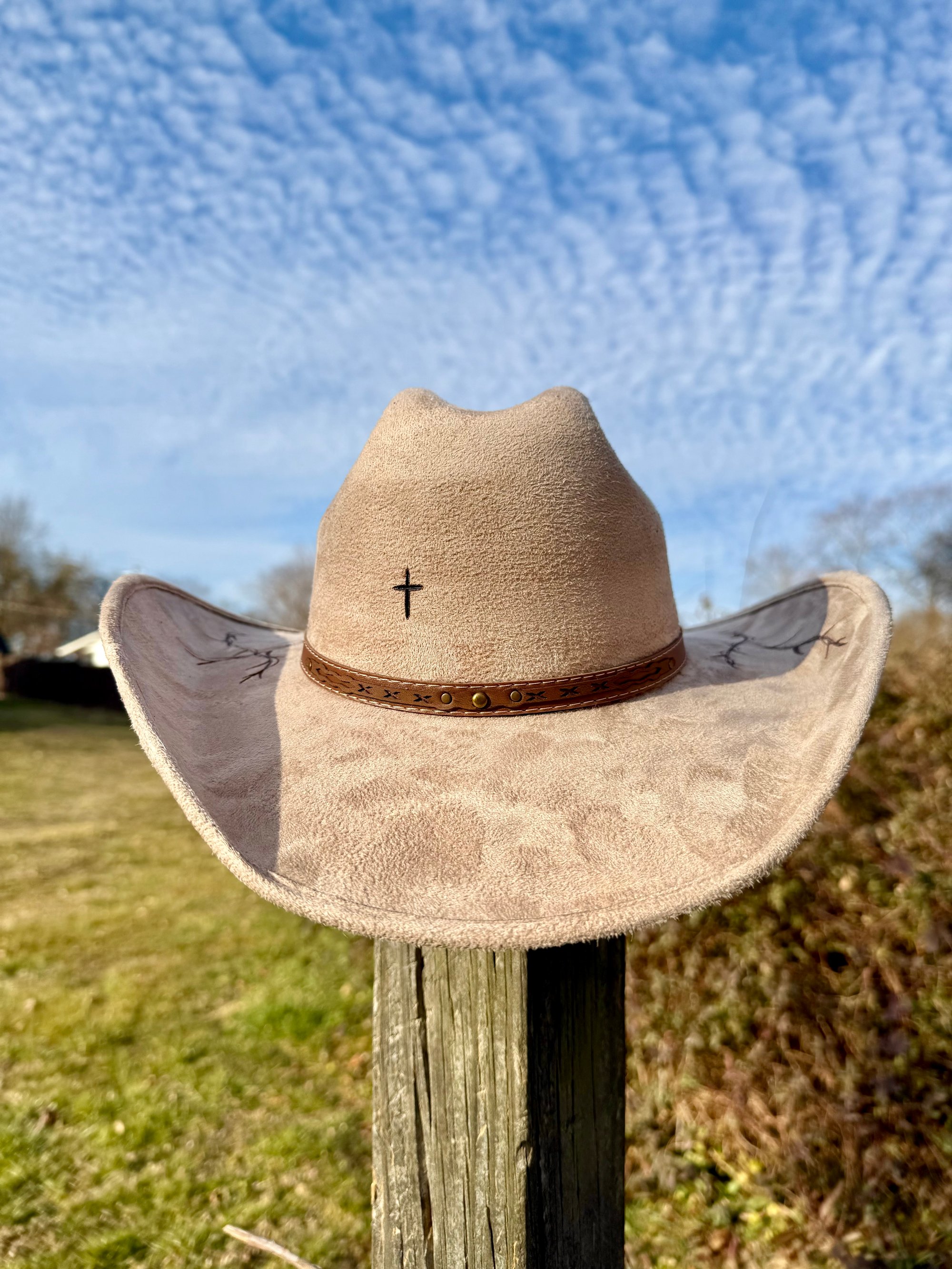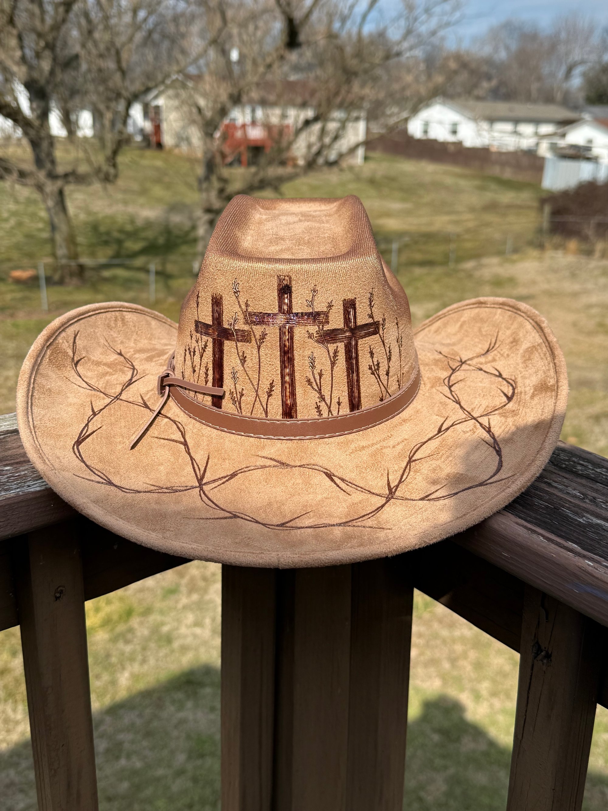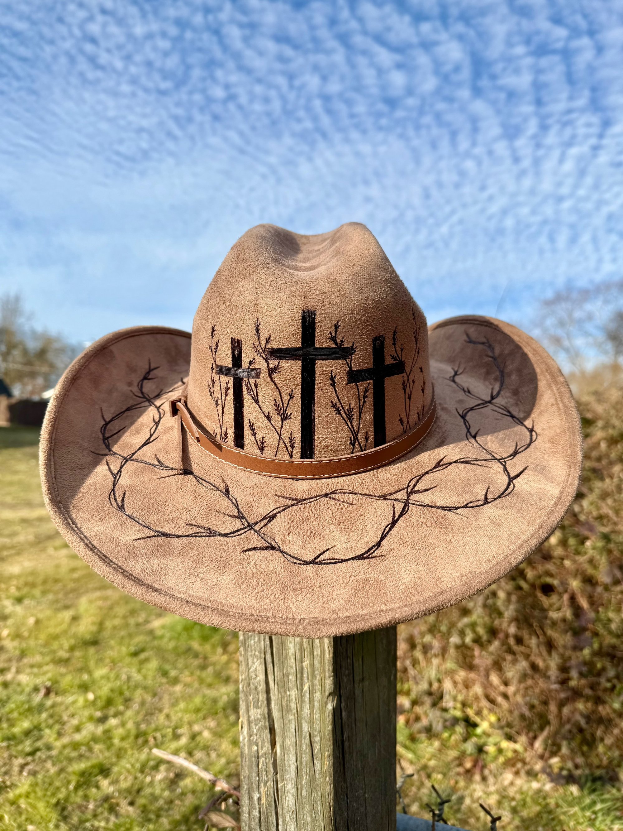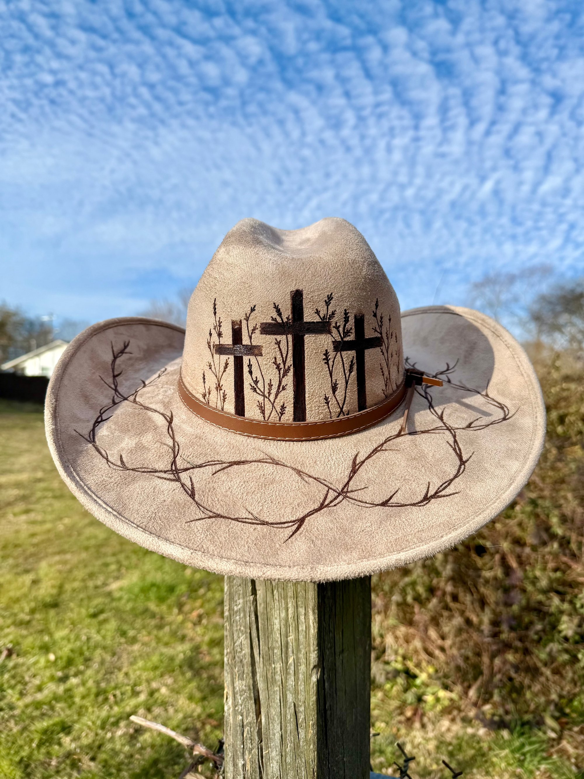 “Crown of Thorns” Three Cross Burned Cowboy Hat