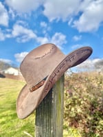 Design will differ slightly from hat to hat, including bands, stitch placement, and line work. Please allow creative differences since these are hand burned and not made with lasers.