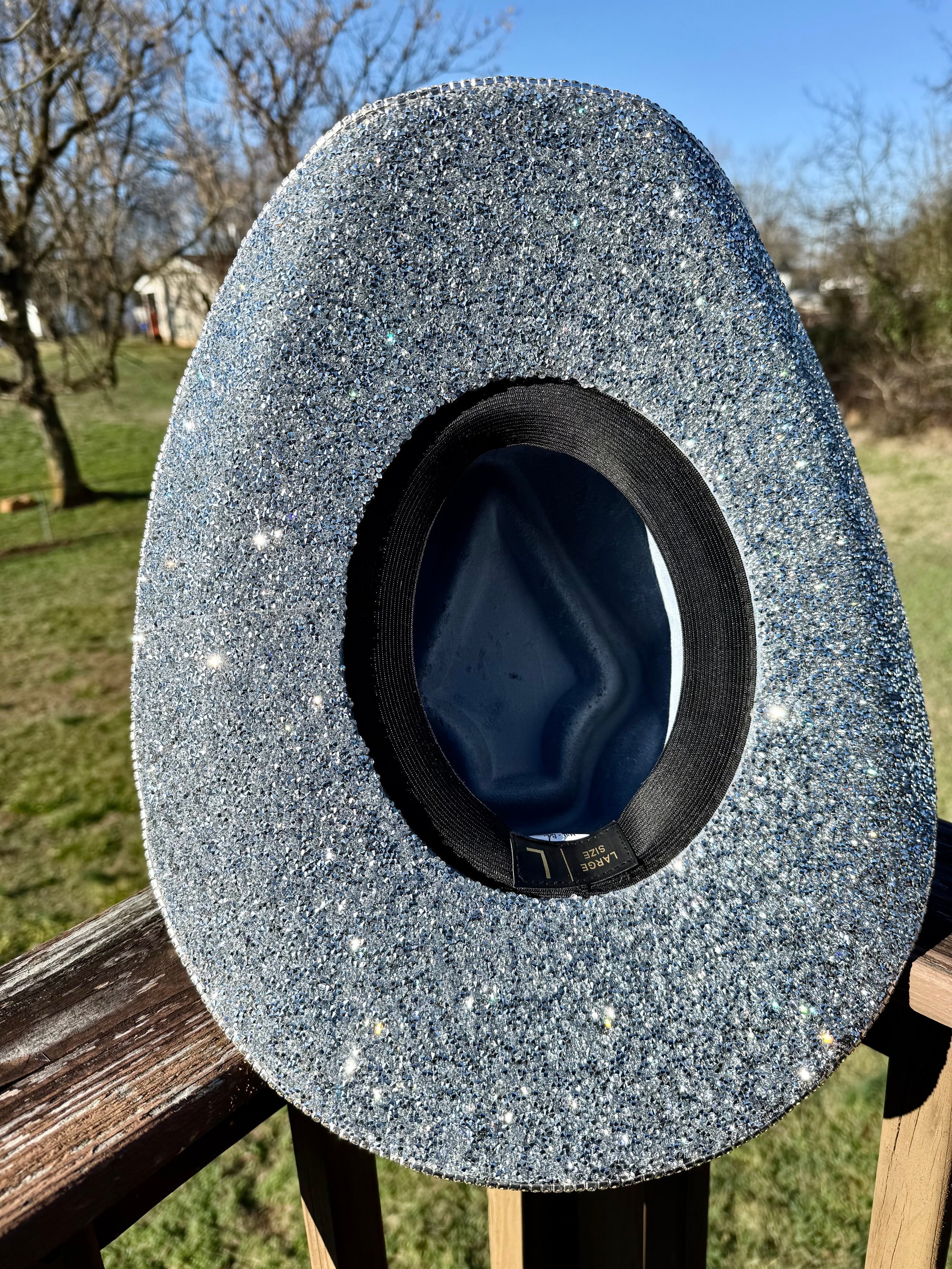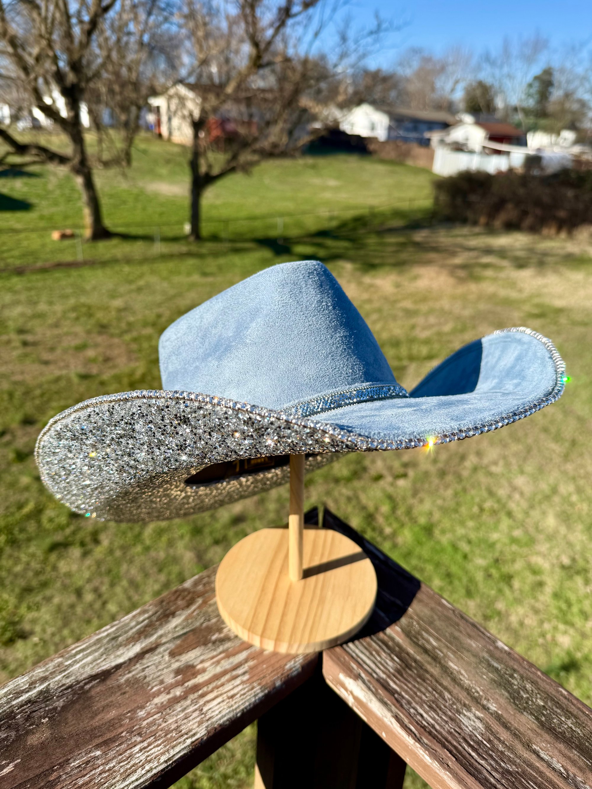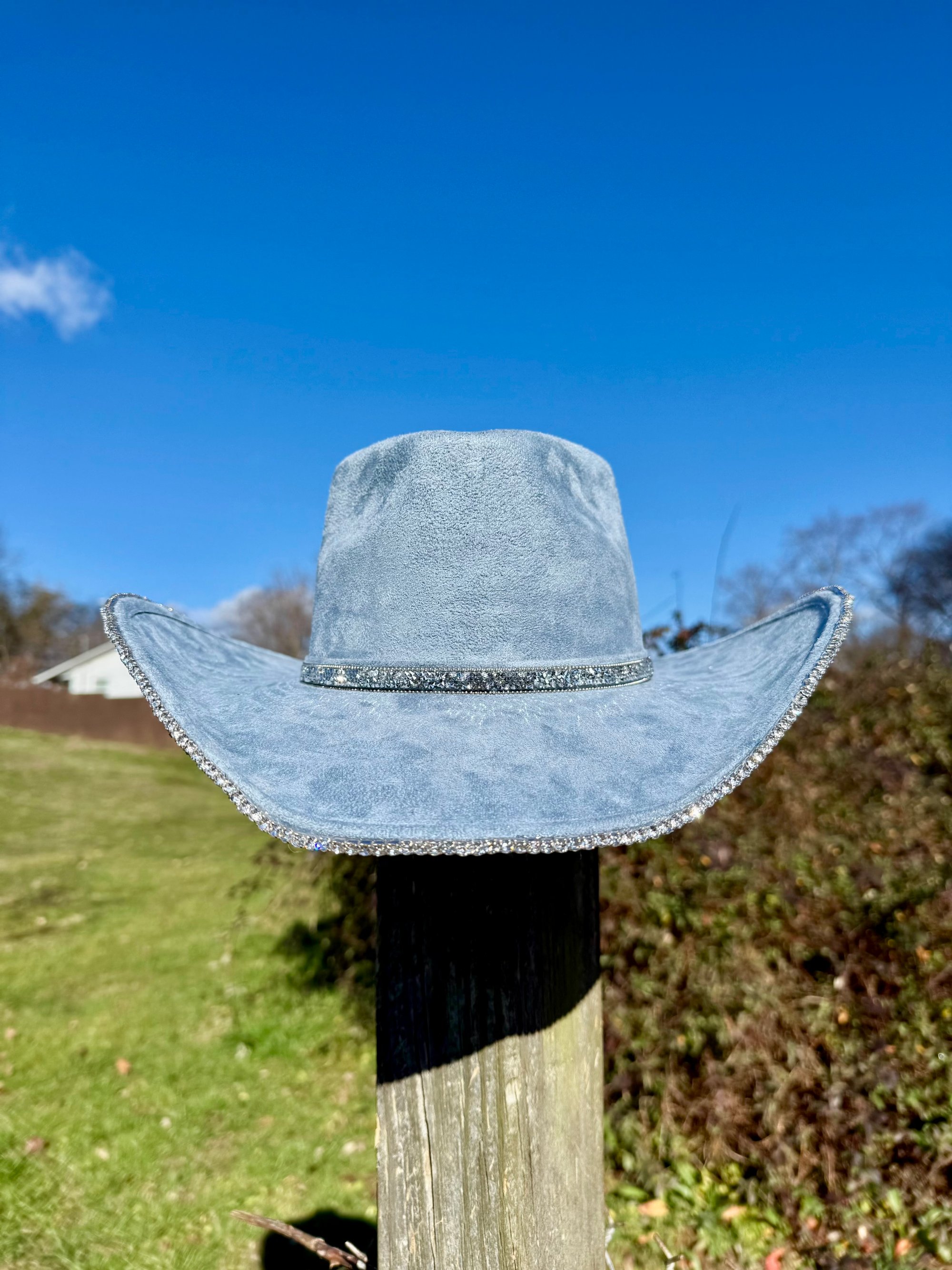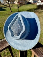 “Denim and Diamonds” Rhinestone Cowboy Hat, Covered Suede Heart Shaped Bedazzled Hats