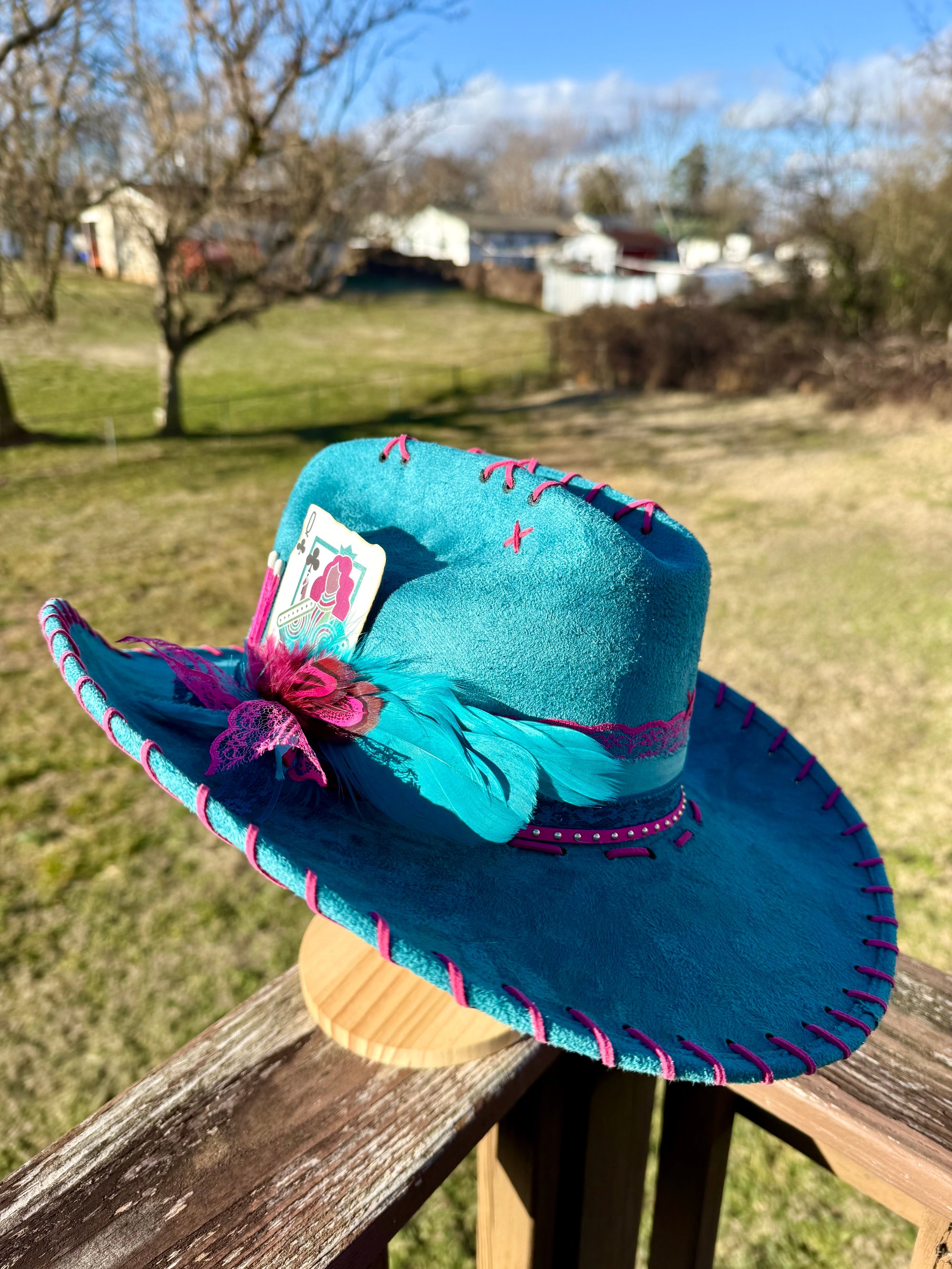 This is the highest quality hat in my shop. Made in Mexico, it’s a more stiff and sturdy brim. 100% EXTRA soft, vegan suede. All weather proof, so they are safe in the rain!