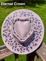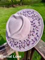 Design will differ slightly from hat to hat, including bands, stitch placement, and line work. Please allow creative differences since these are hand burned and not made with lasers.