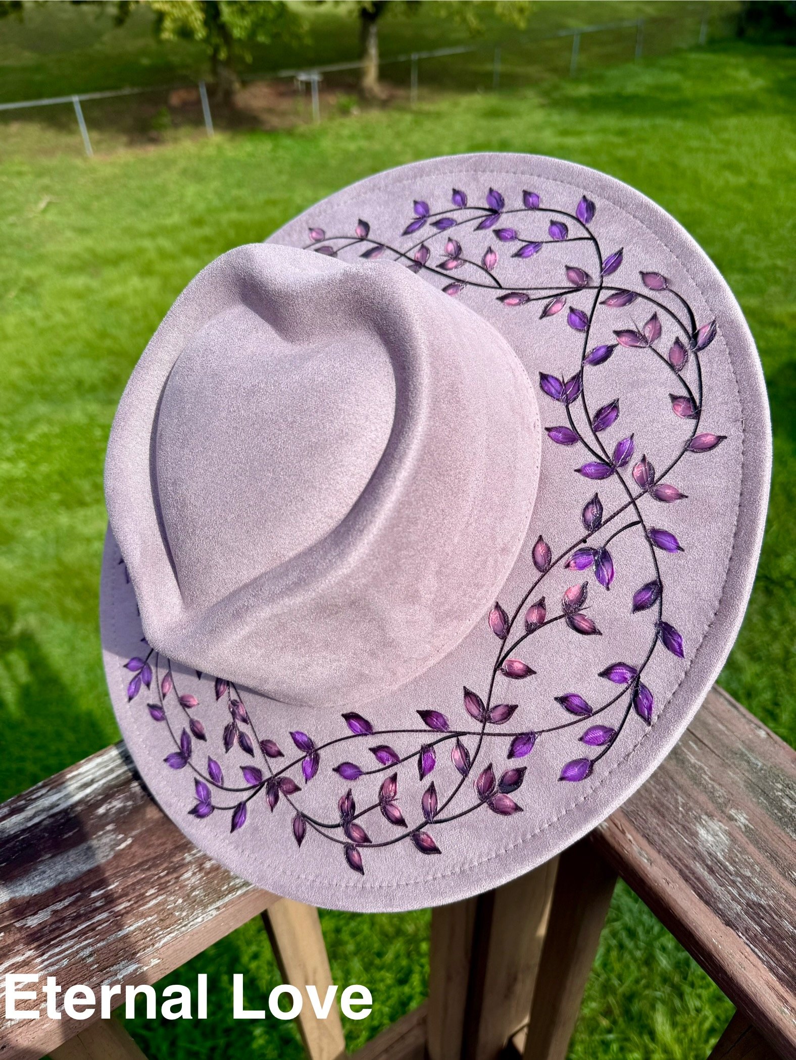 My hats are all hand burned. I do not use lasers and I do not use stencils. Everything is free hand. Prices reflect the quality of materials I use, plus the time and uniqueness that go into my work. My prices are 30%-50% lower (or more) than many sellers on Etsy in comparison the the detail and design you’re getting. I’m always happy to answer any questions.