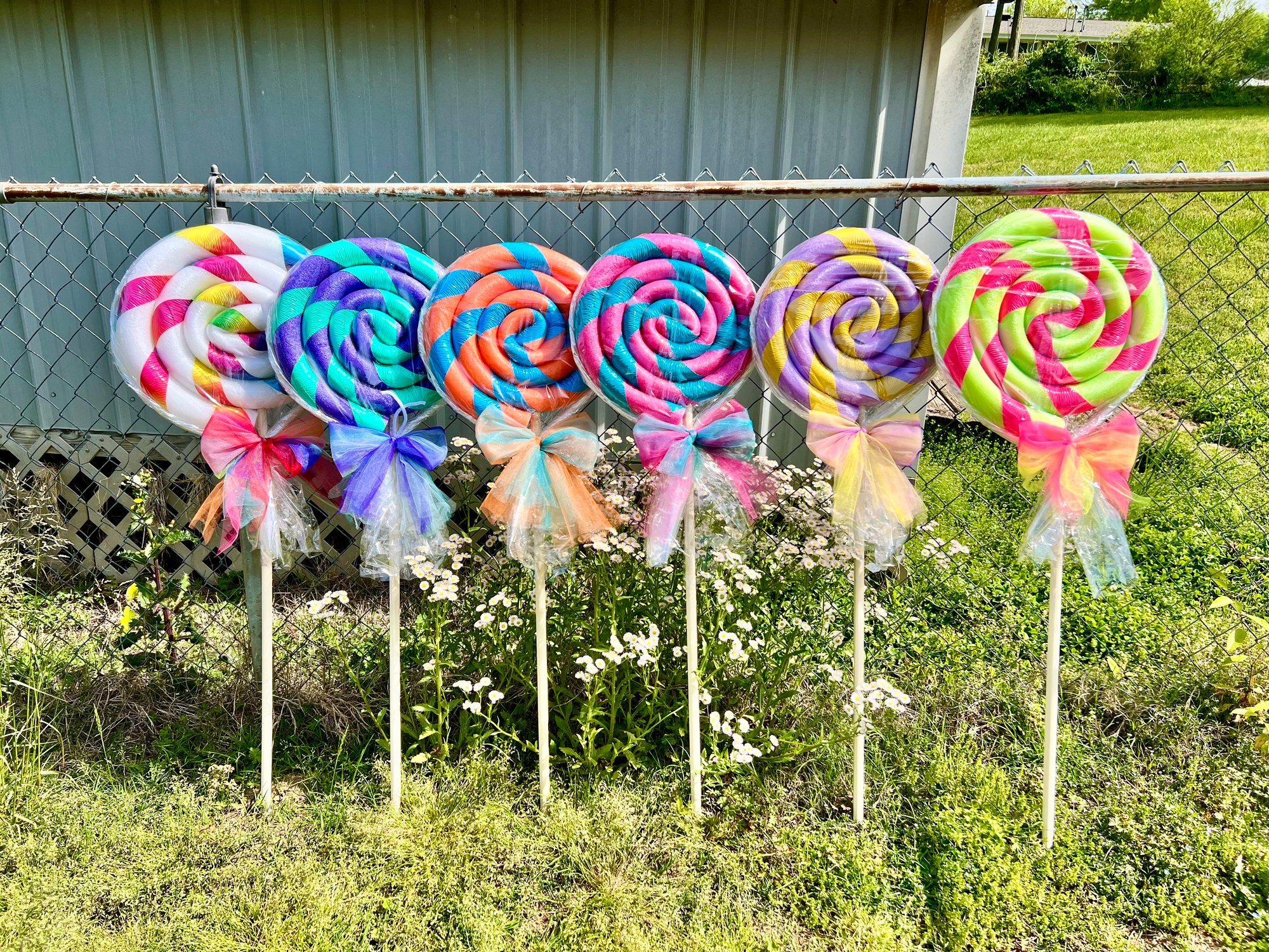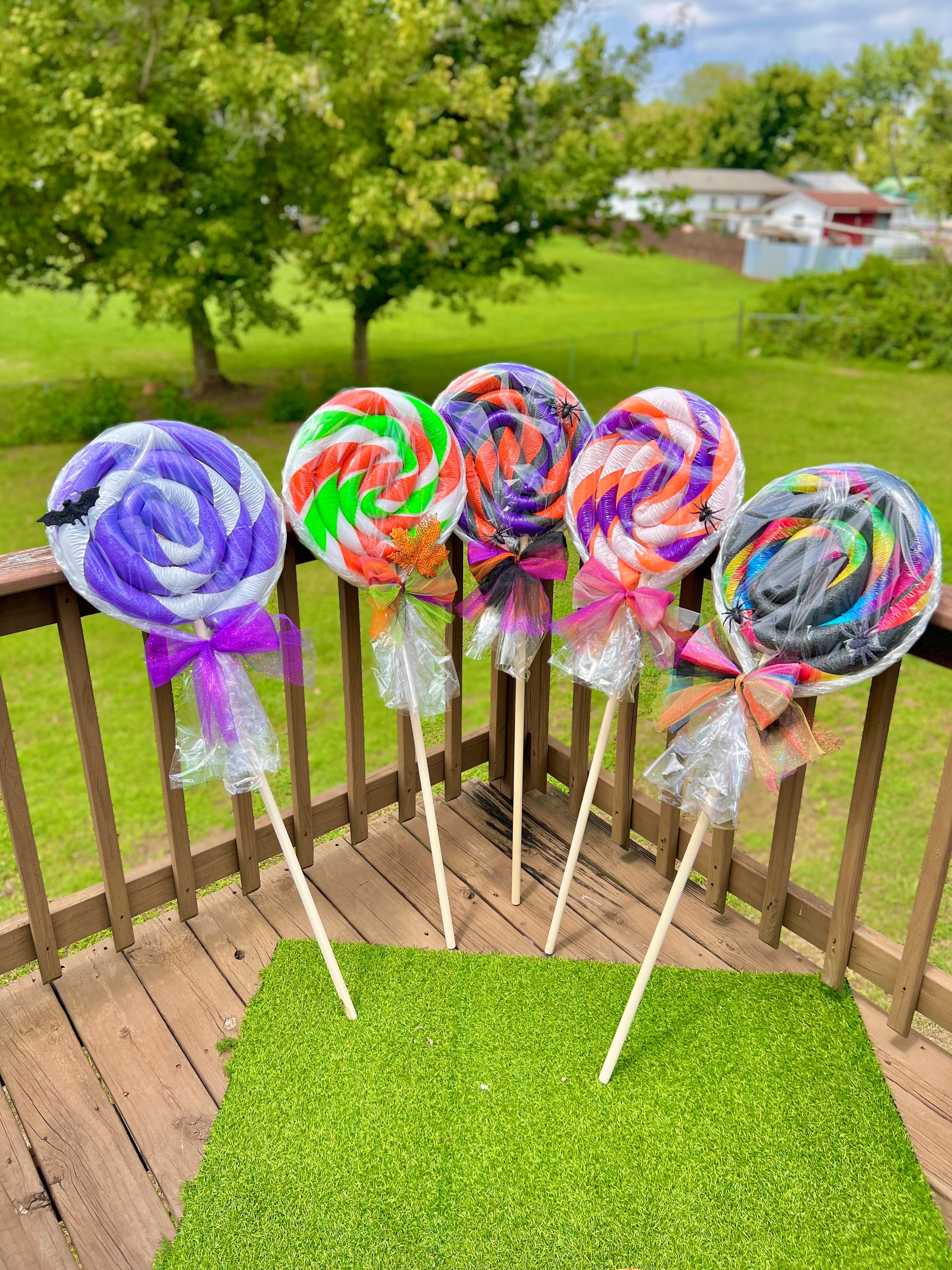 These Foam lollipops are the perfect decoration for your front lawn. Use for any holiday or birthday party. Great for Christmas decor, Halloween, and Easter. Great for Candy theme and circus theme parties, dance recitals, and baby showers!