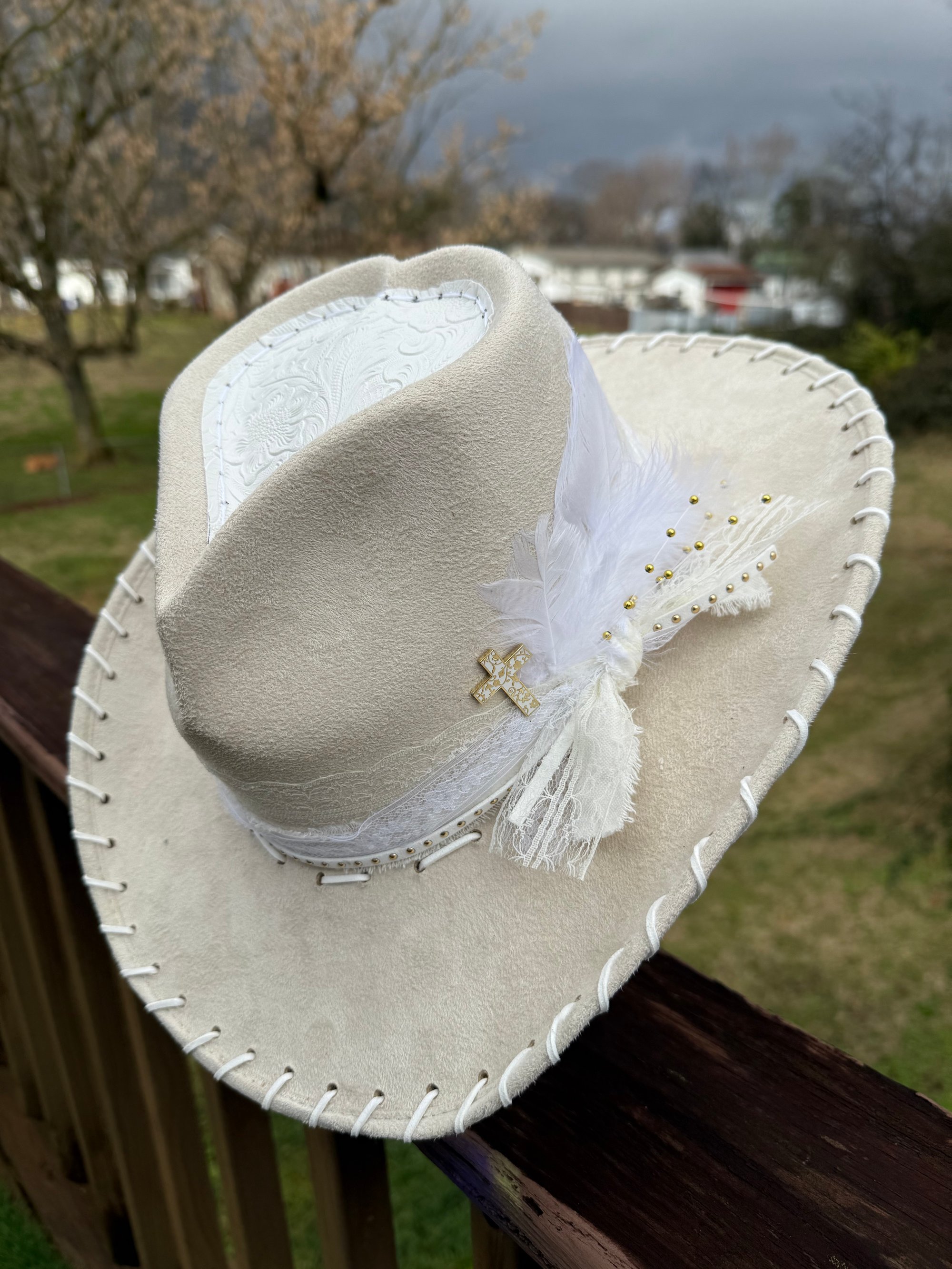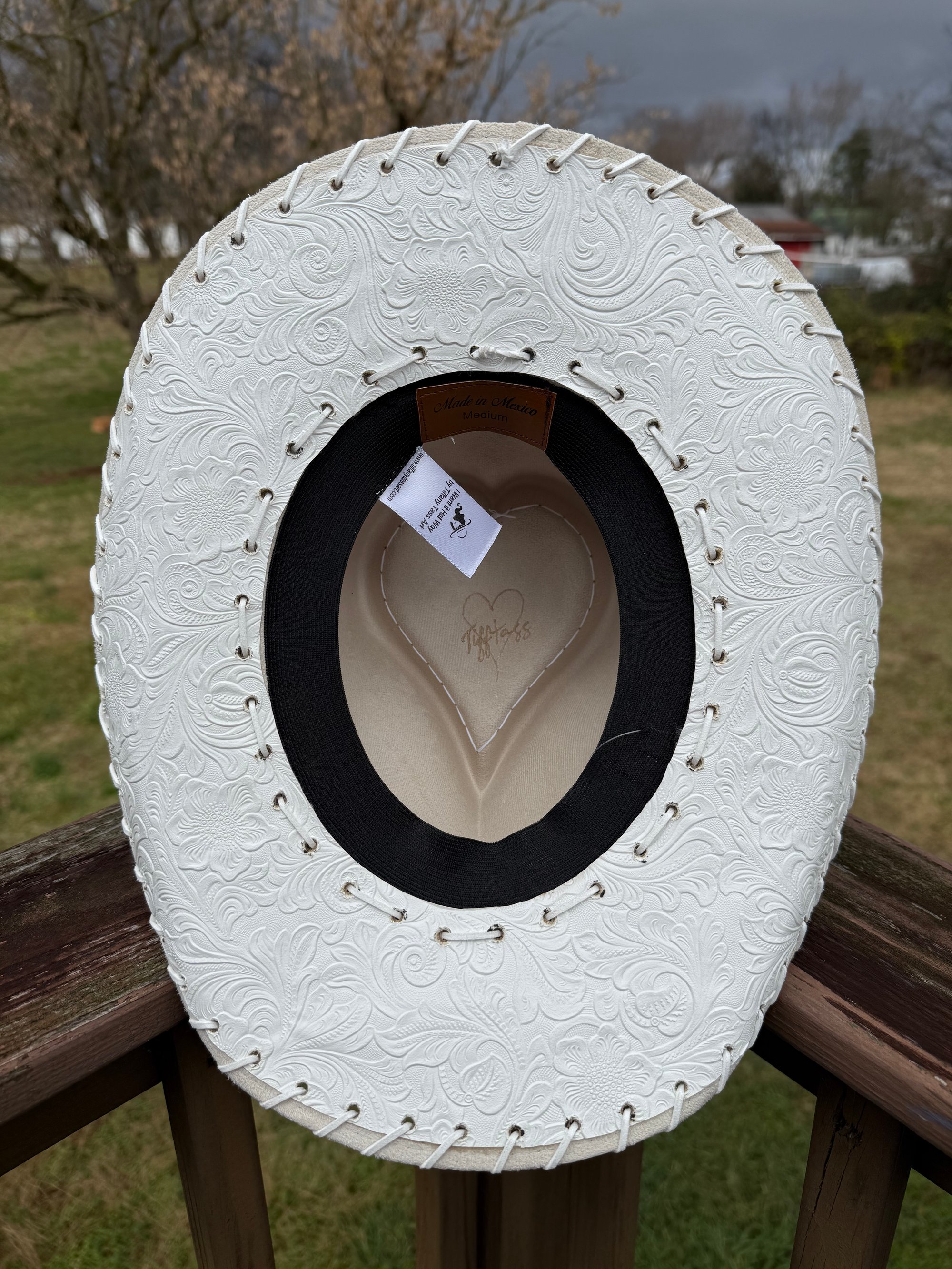 “Golden Kiss” Heart Shaped Bridal Cowboy Hat with Tooled Paisley Leather