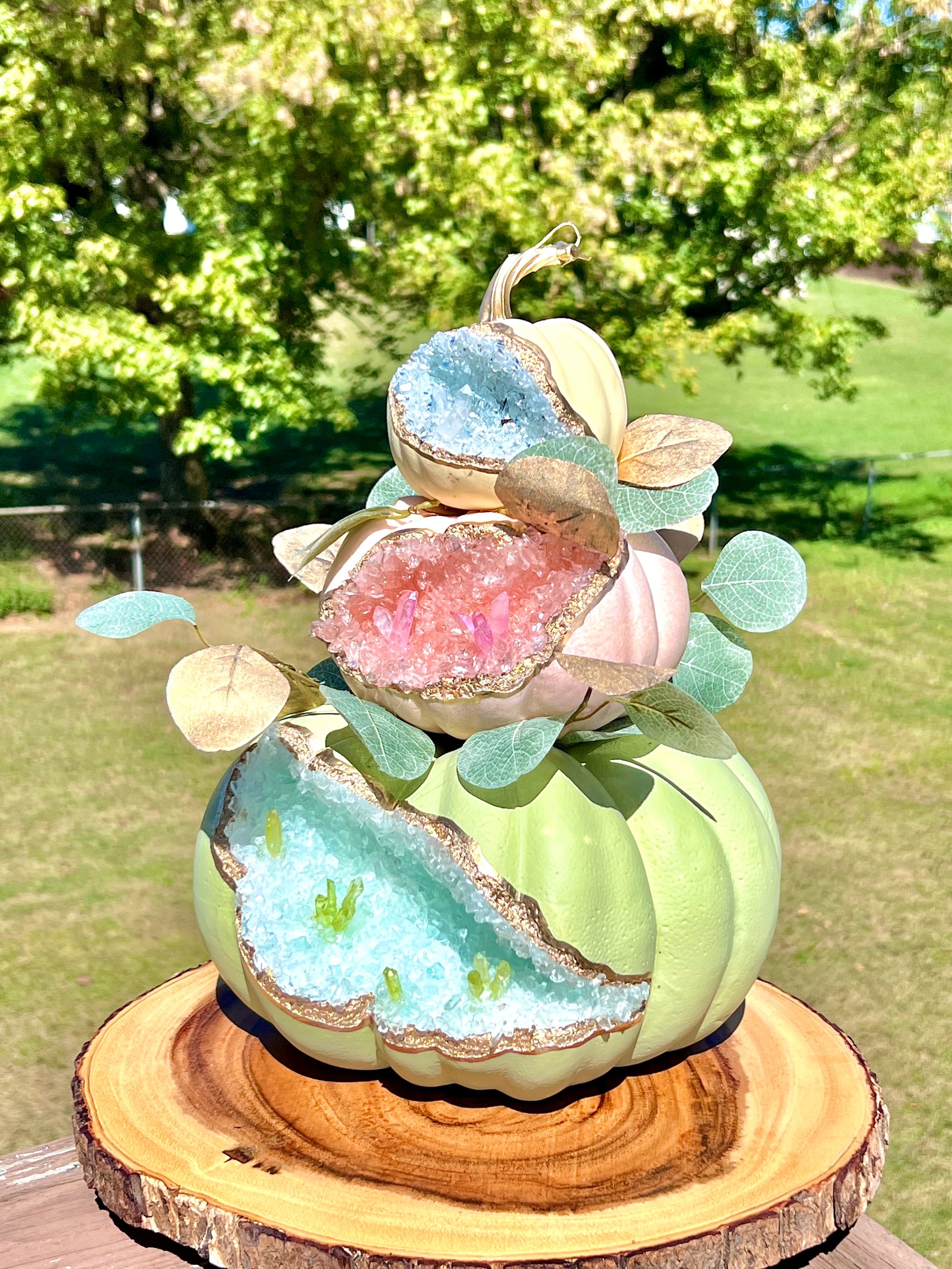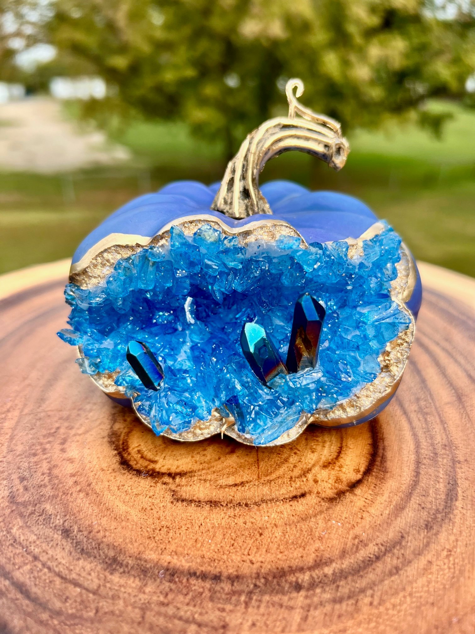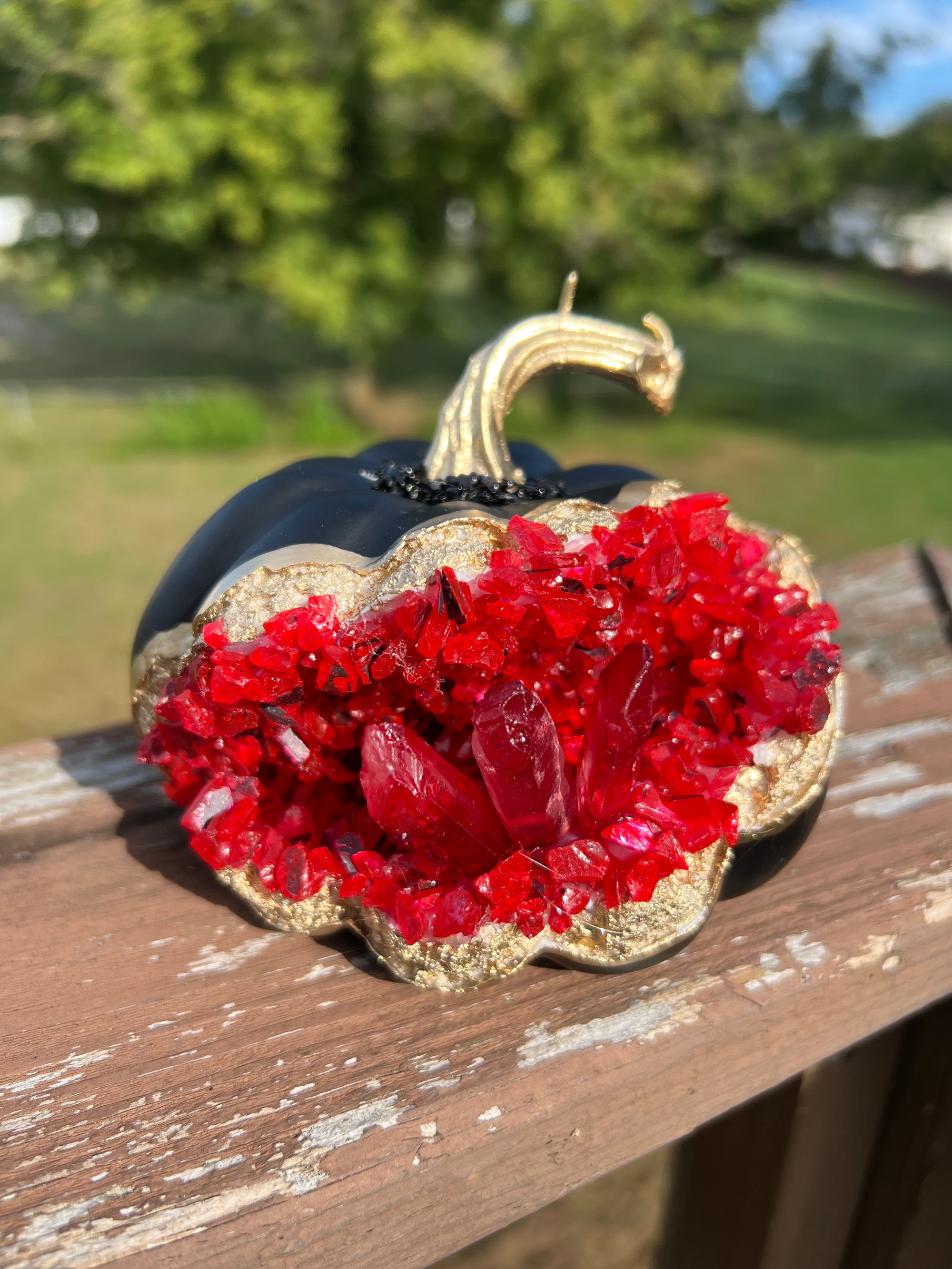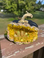 •MATERIALS: Each pumpkin is delicately made. Light weight, foam pumpkins carved out and filled with real quartz crystal points and faux crystal filler. Typically less than 1lb.