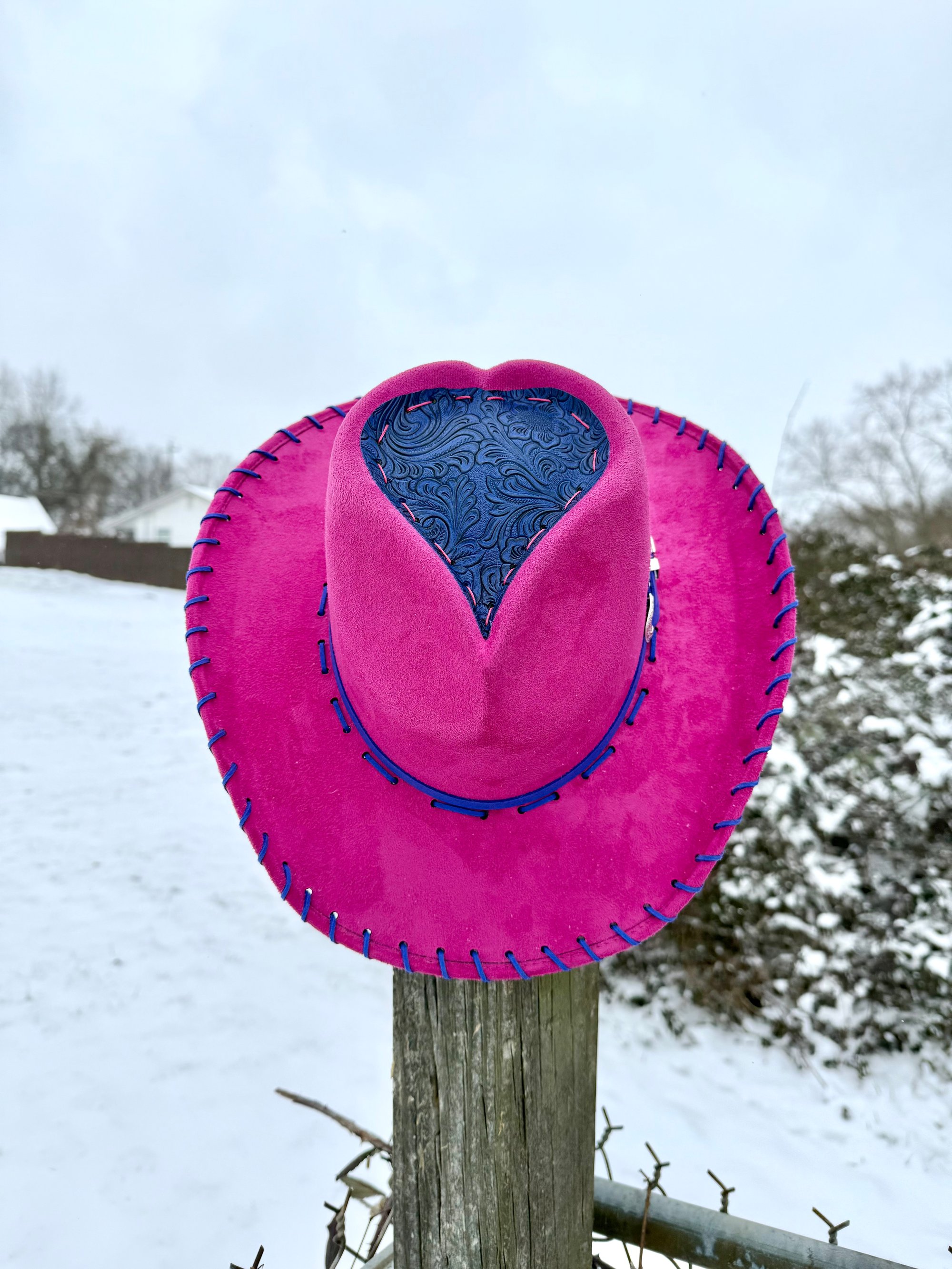 This is the highest quality hat in my shop. Made in Mexico, it’s a more stiff and sturdy brim. 100% EXTRA soft, vegan suede. All weather proof, so they are safe in the rain!