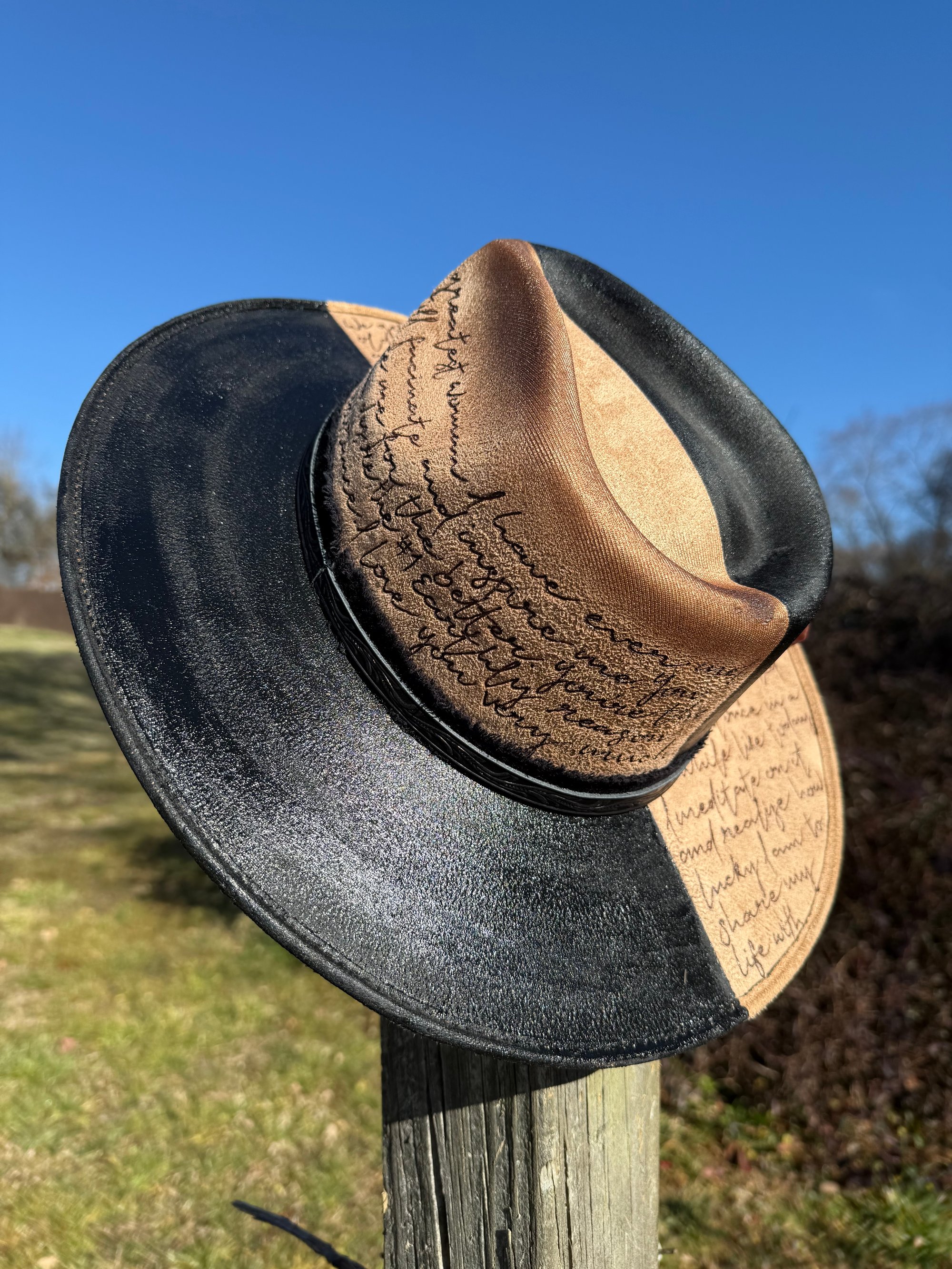 “Johnny and June” Burned Hat, High Quality Suede Burned Flat Brim Hat
