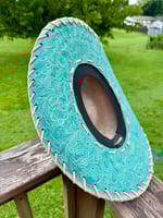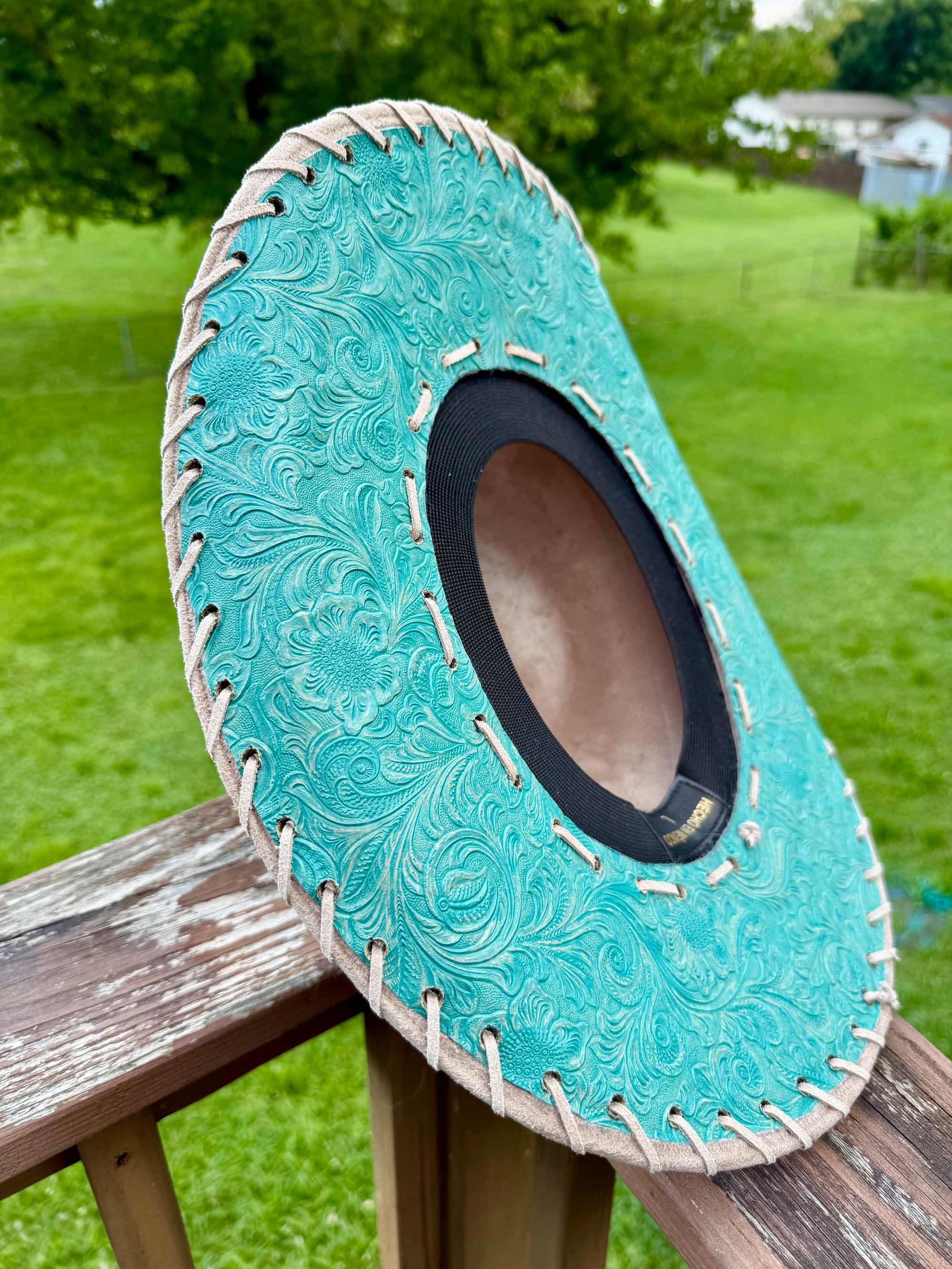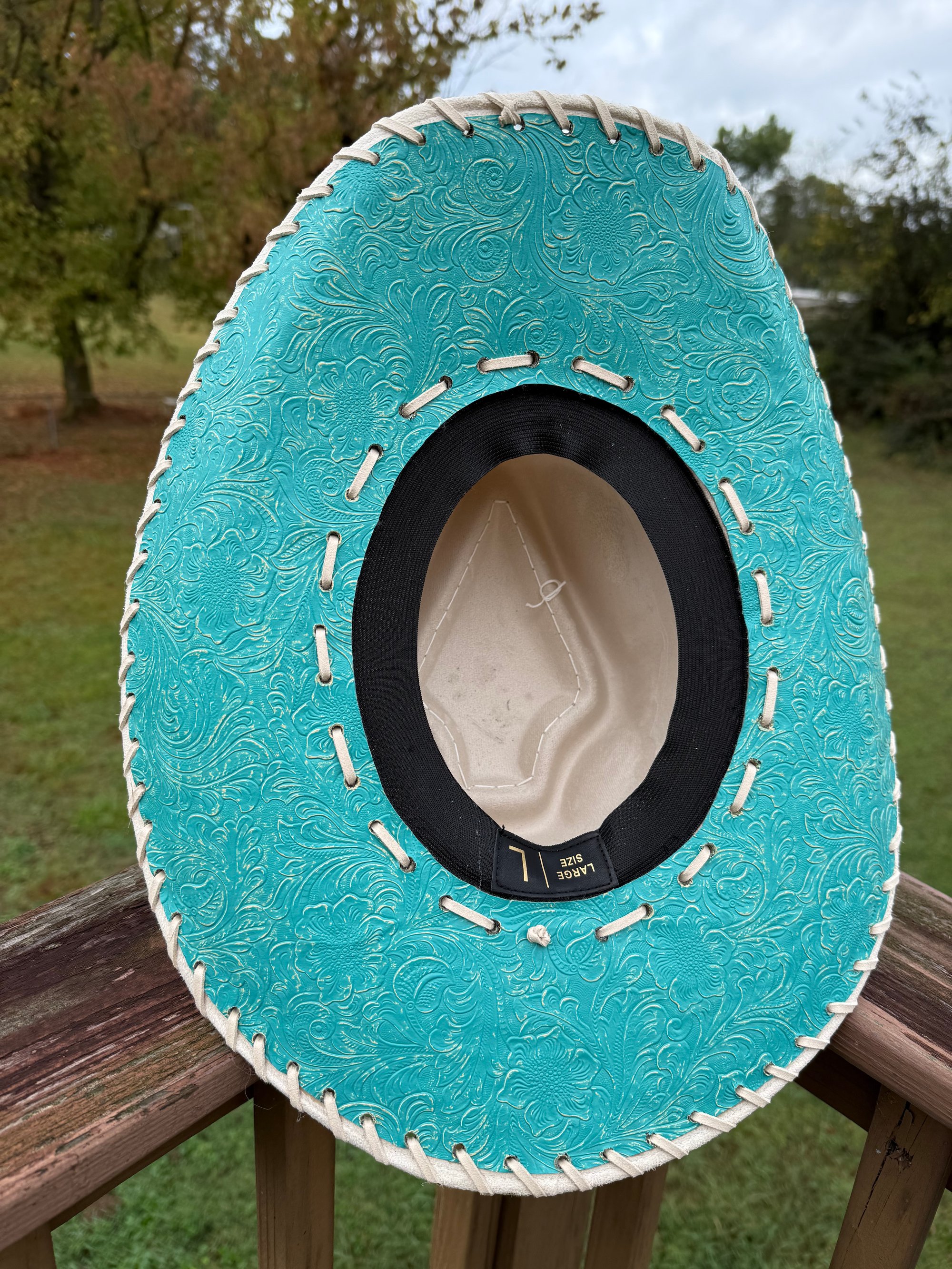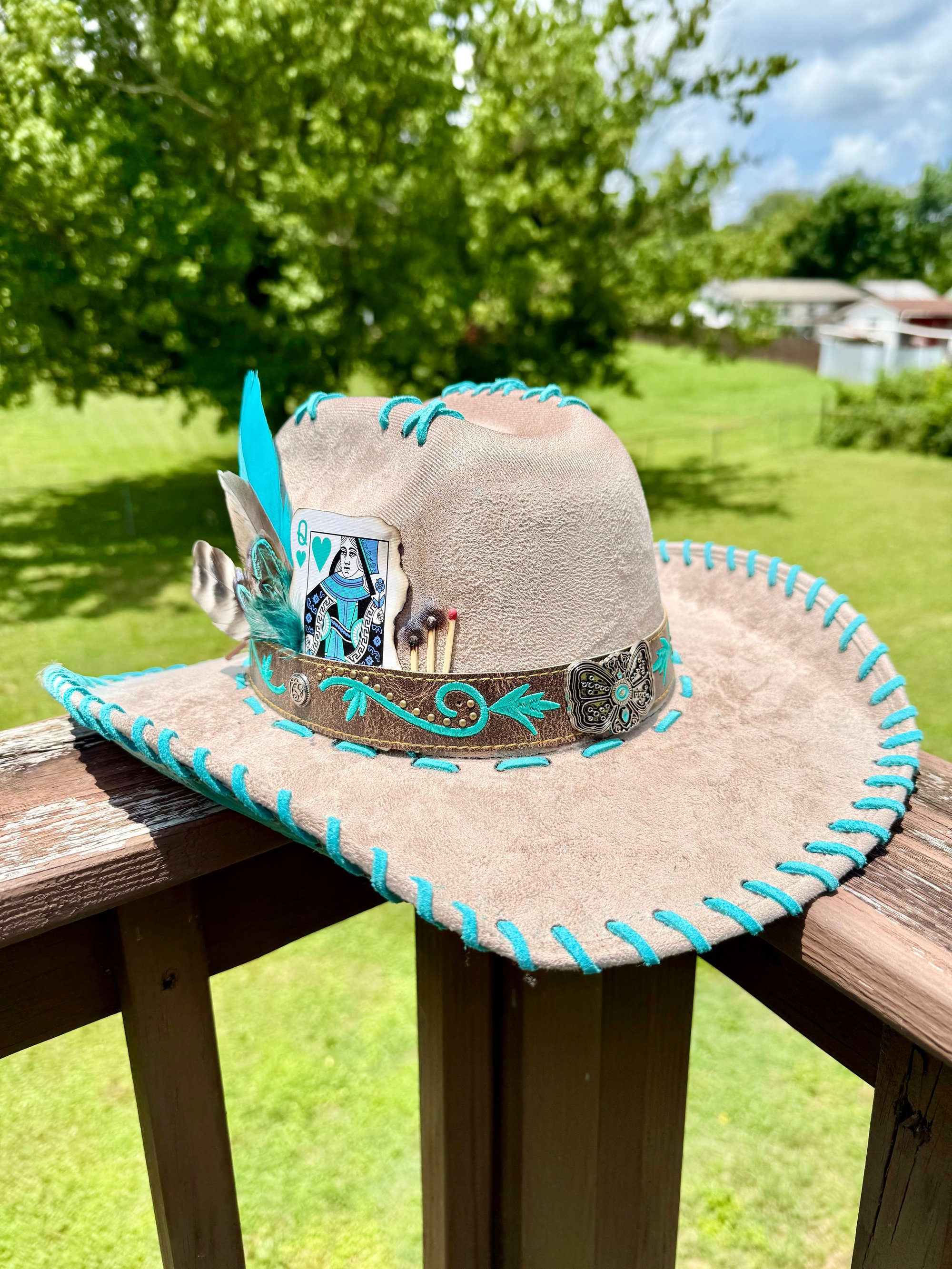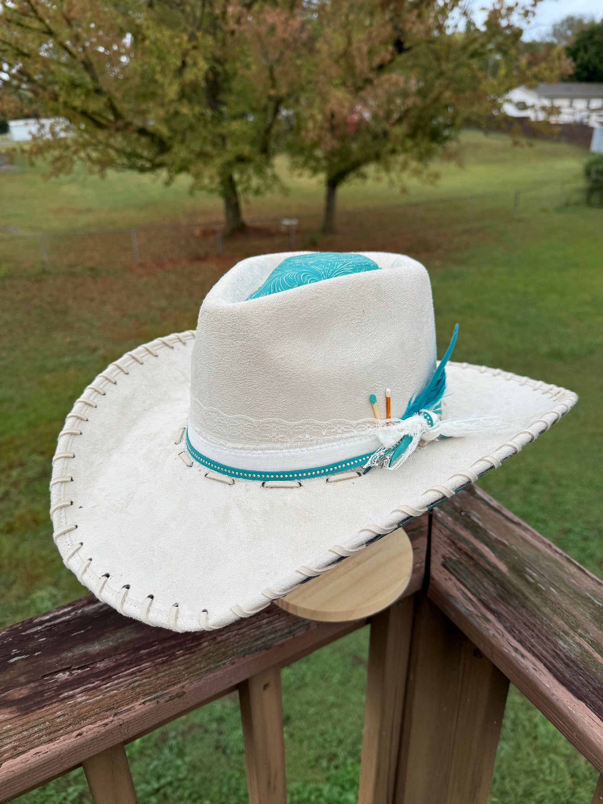 "Paisley Breeze" Burned Cowboy Hat, Whipstitched Suede Hat, Turquoise Leather Stitched Hat