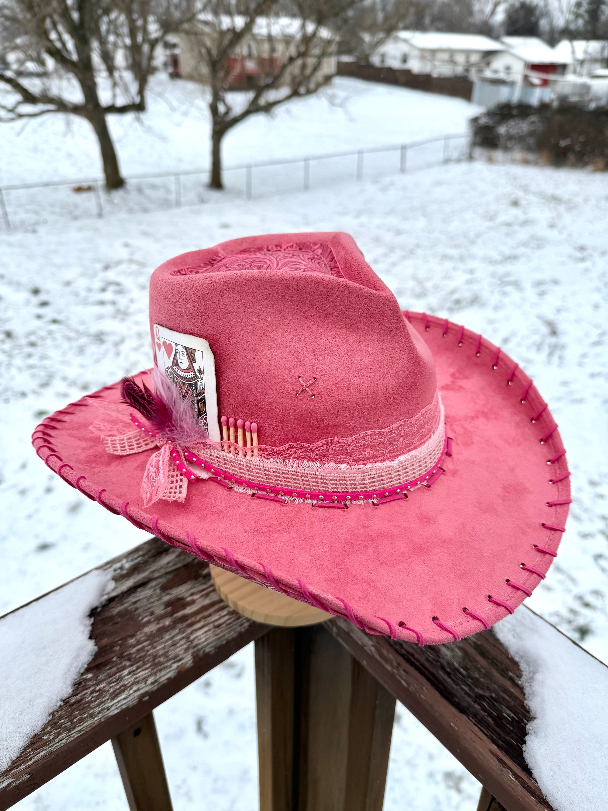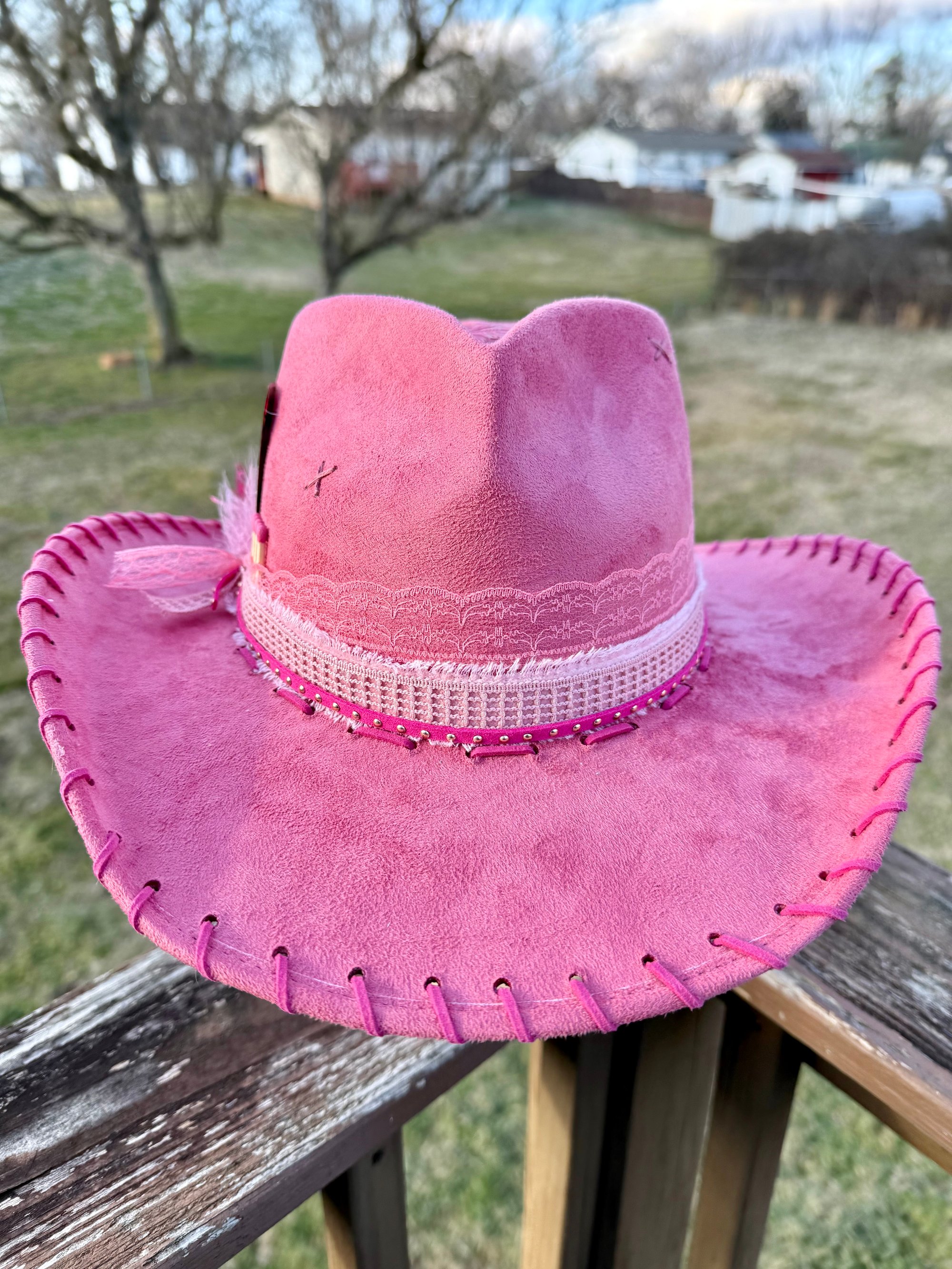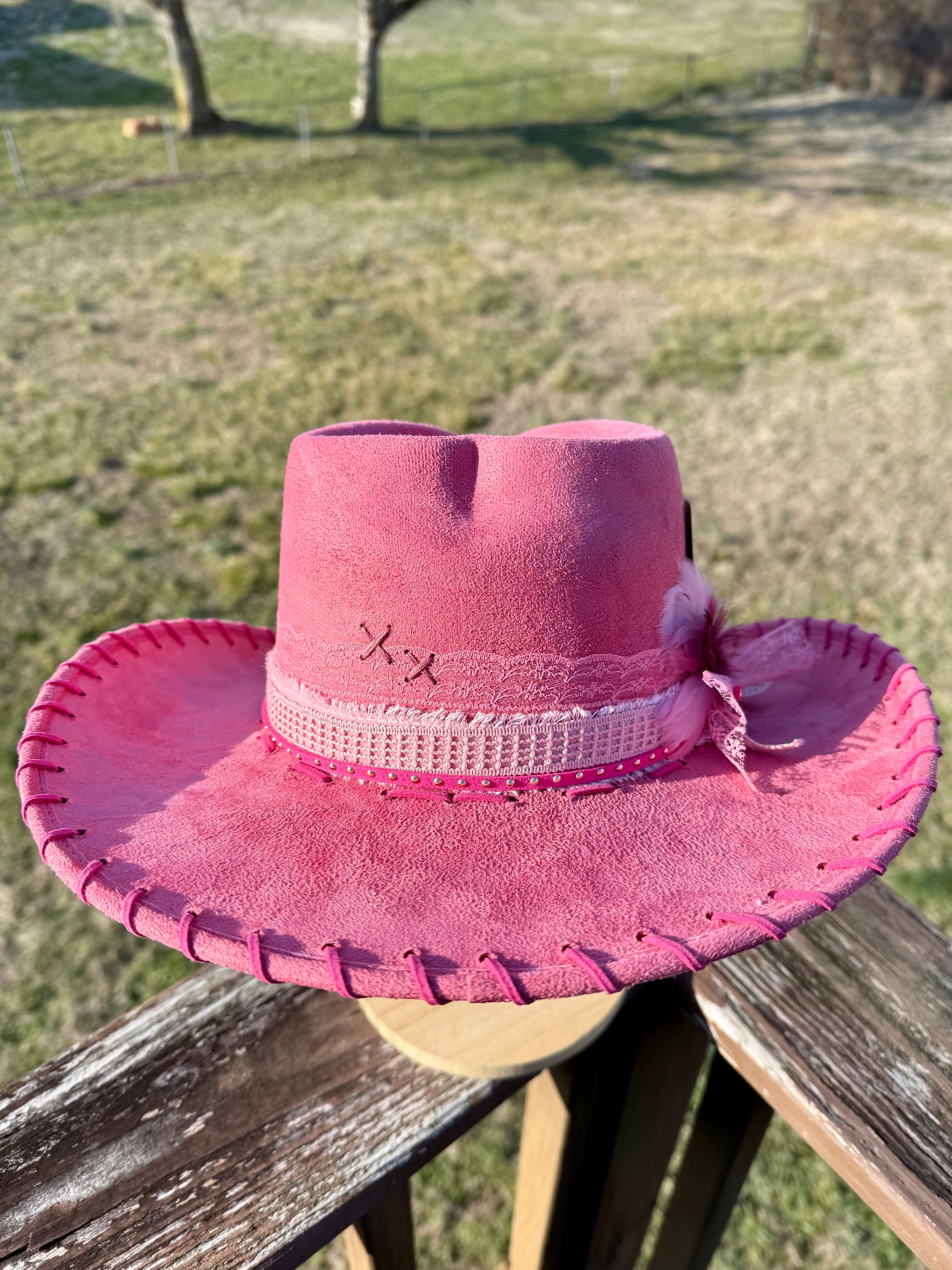 This is the highest quality hat in my shop. Made in Mexico, it’s a more stiff and sturdy brim. 100% EXTRA soft, vegan suede. All weather proof, so they are safe in the rain!