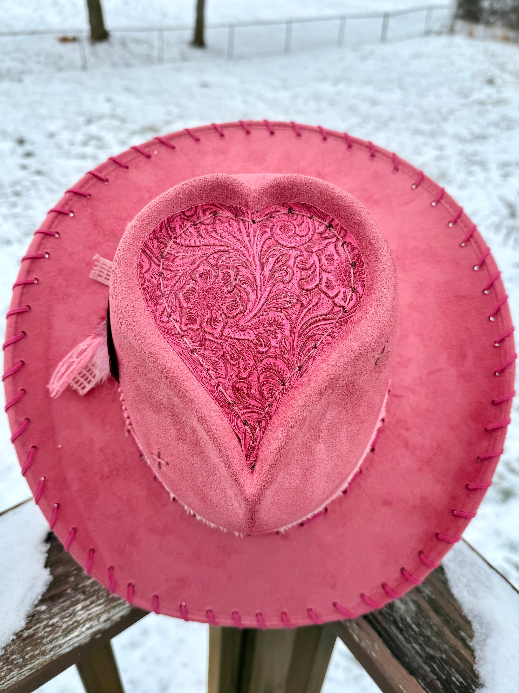 “Rosé at Sundown” Cowboy Hat with Tooled Paisley Leather