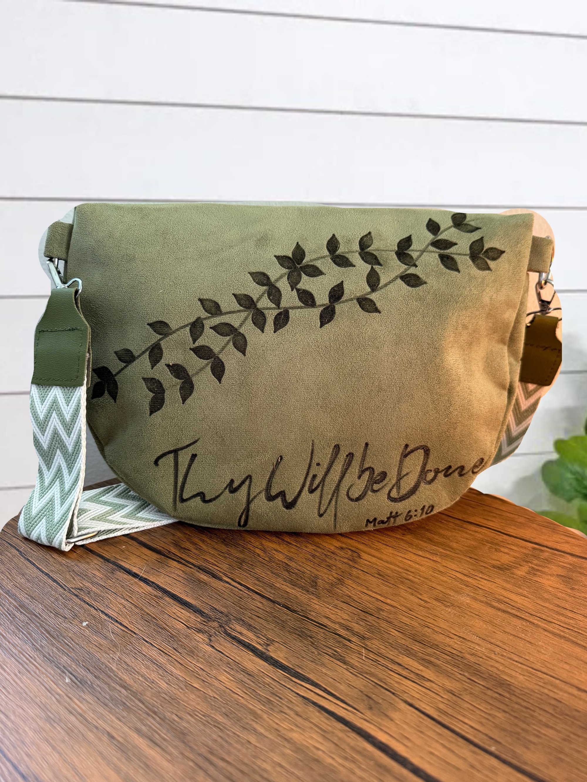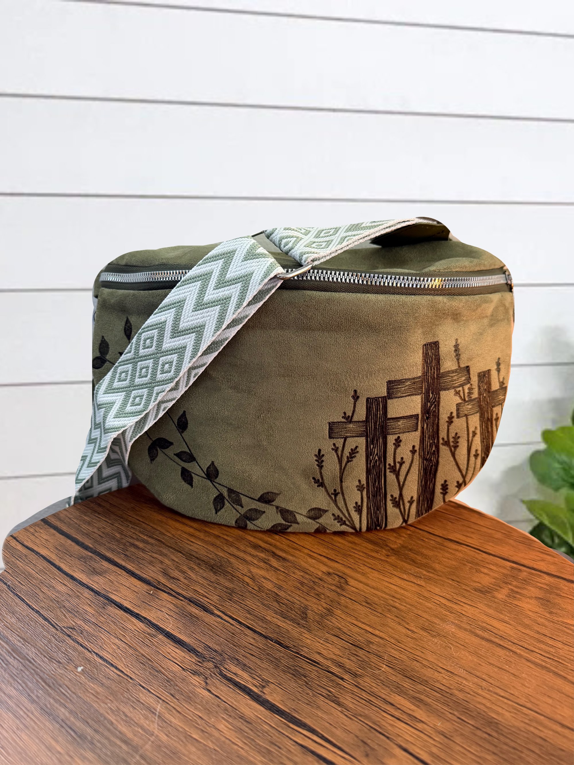 Sage Green Three Cross Burned Crossbody Purse, Fanny Pack