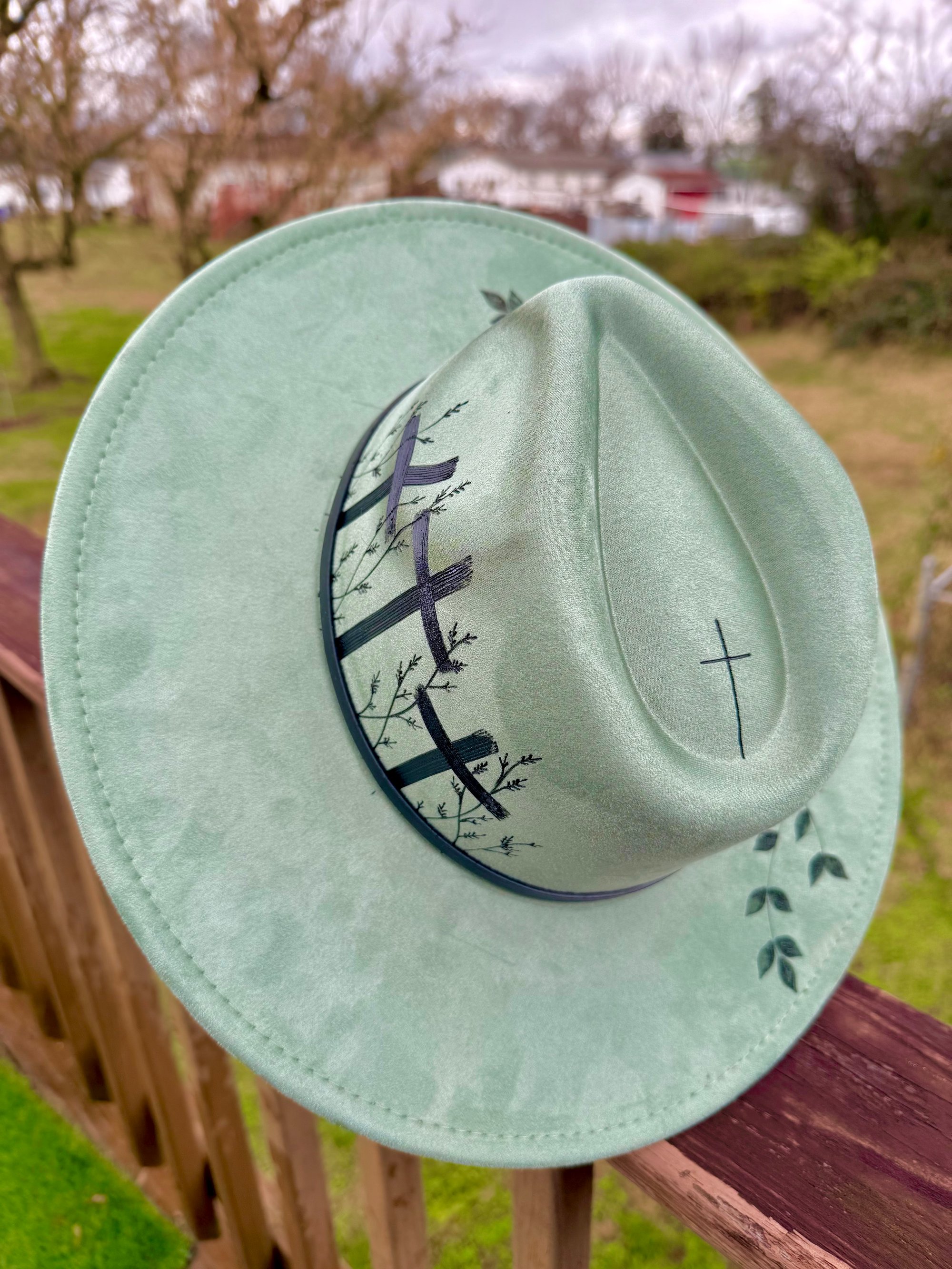 "Three Cross Burned Hats" Burned Cross Hat, Cross Cowboy Hat, Christian Hats, Christian Accessories