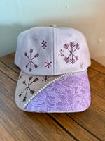 Each hat has a faux tooled fabric attached with an extra embellishment of diamond, pearls, or studded suede cord.