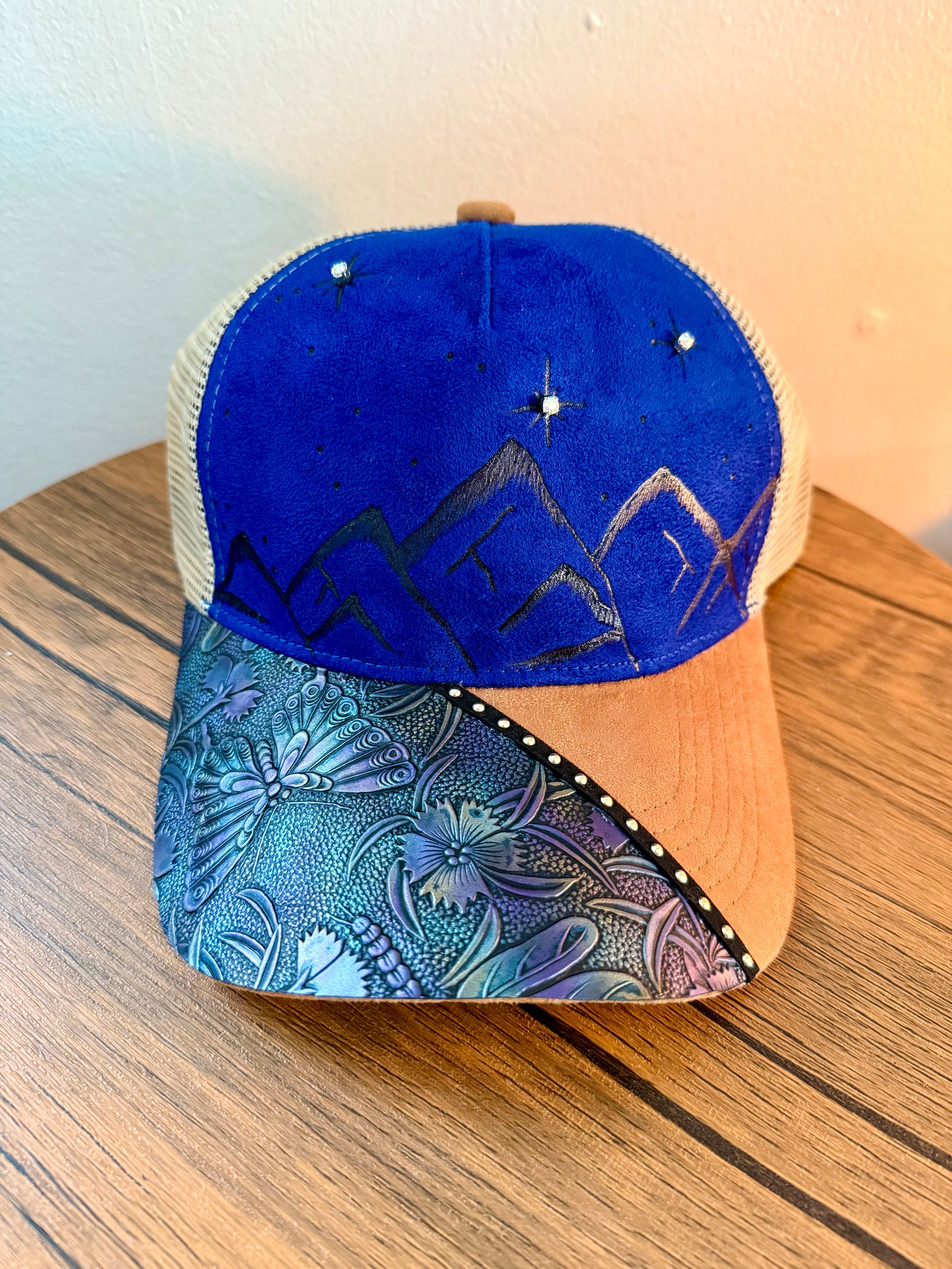 Transformation Collection Tooled Leather Two Tone Suede Baseball Caps