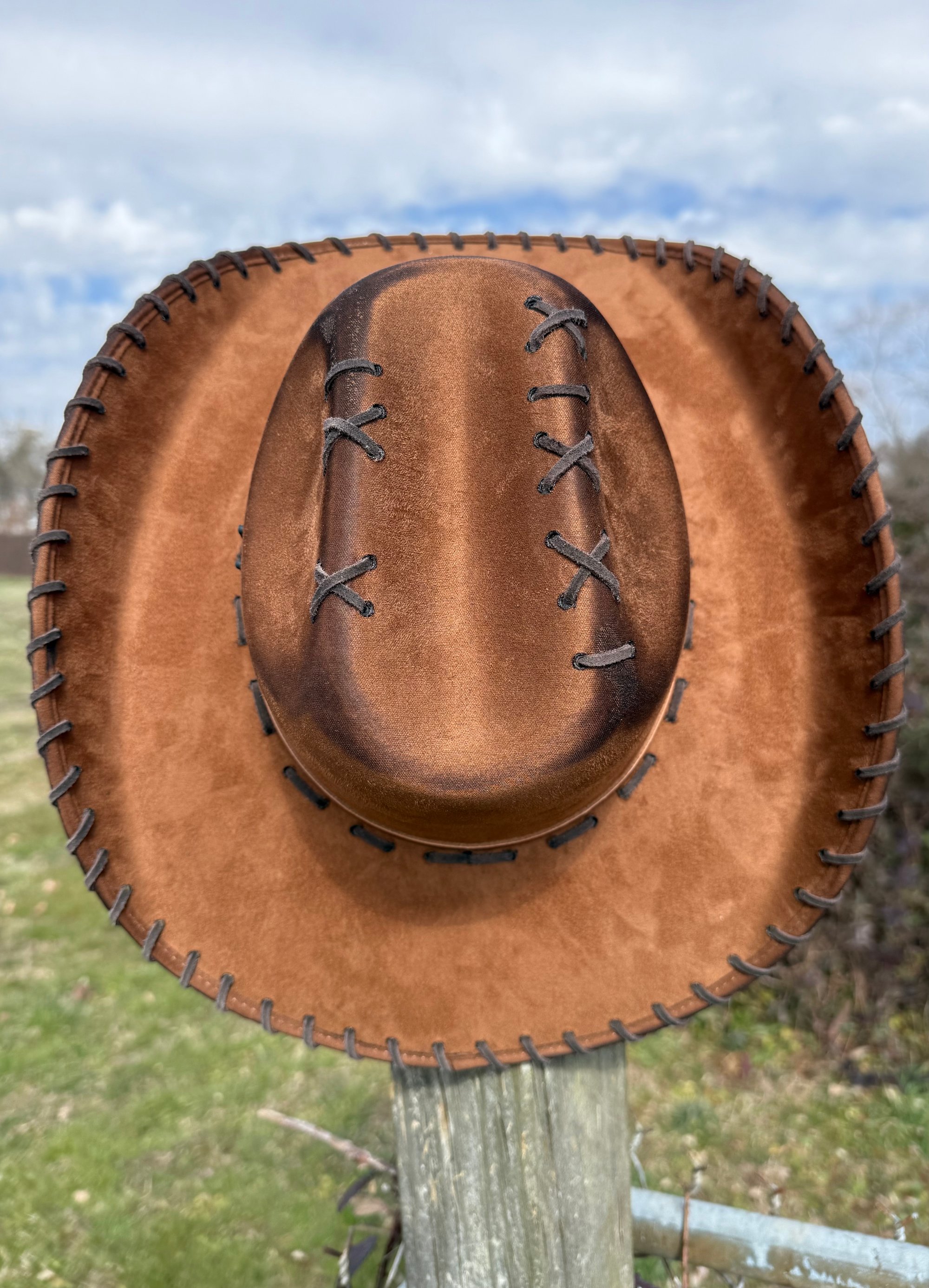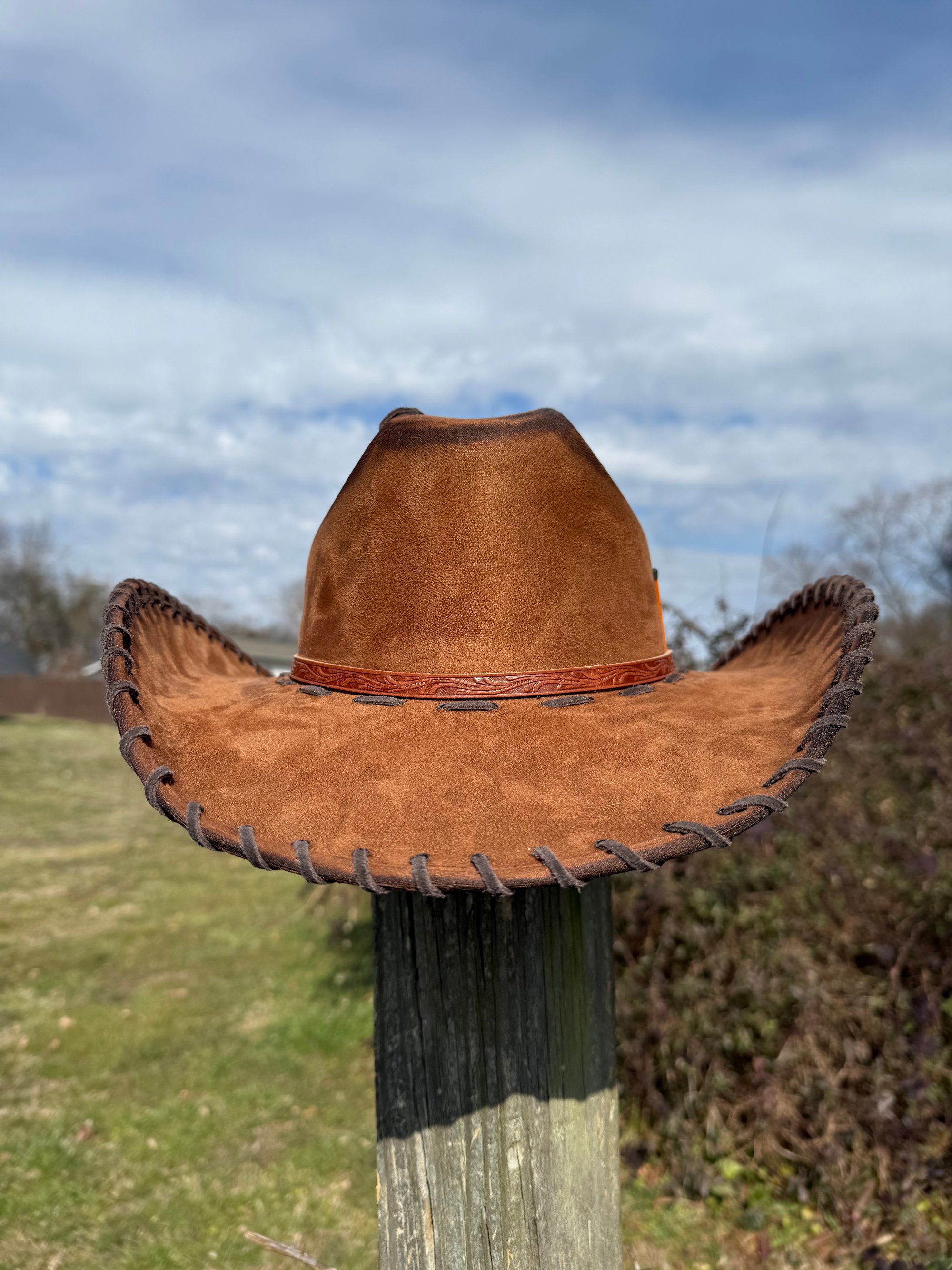 This is the highest quality hat in my shop. Made in Mexico, it’s a more stiff and sturdy brim. 100% EXTRA soft, vegan suede. All weather proof, so they are safe in the rain!